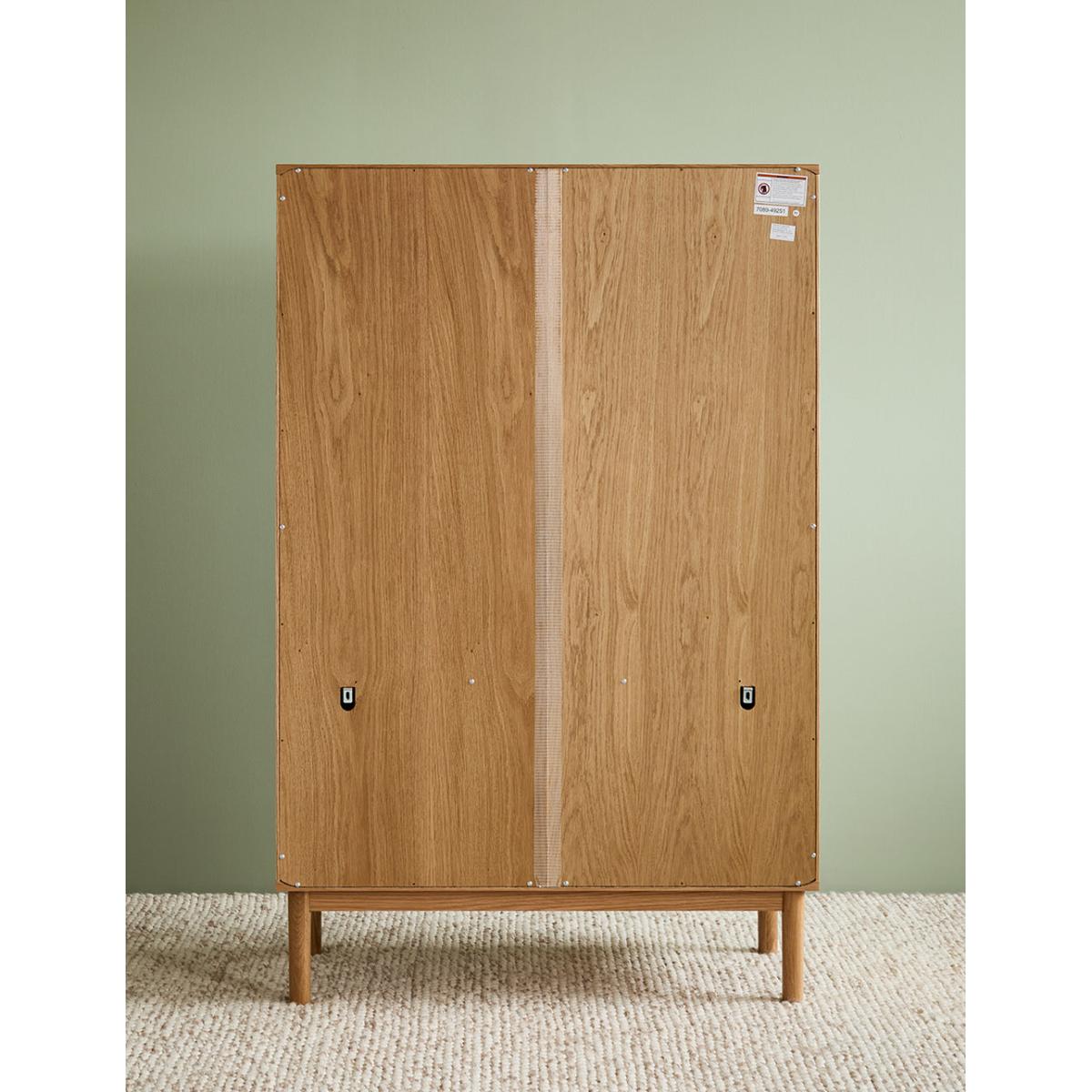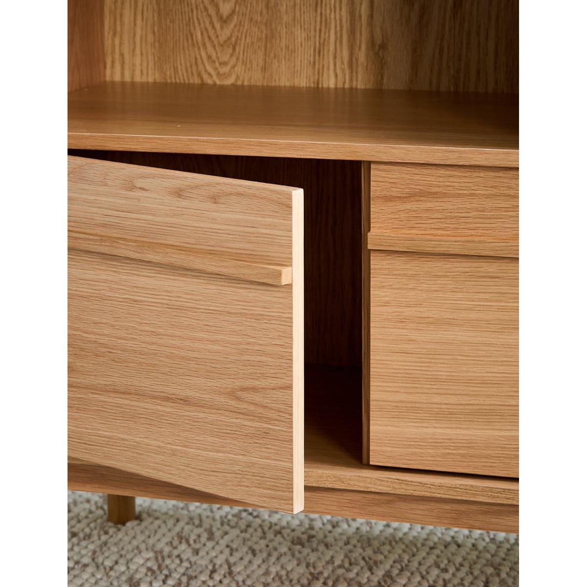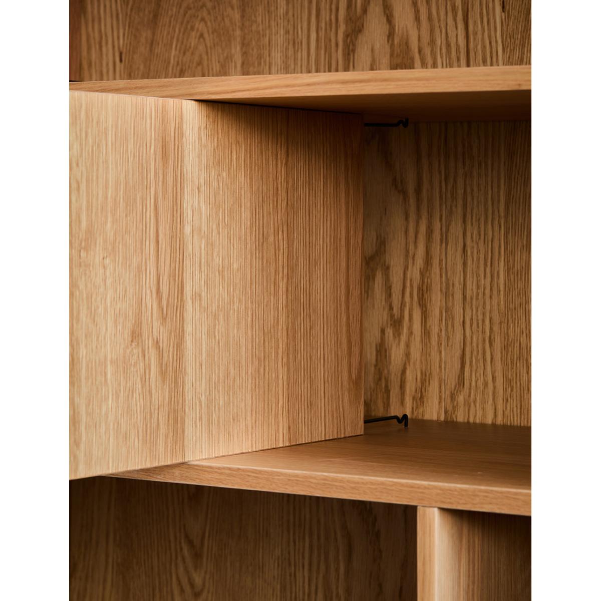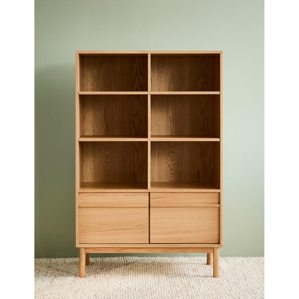 A solidly built and minimally styled bookcase with a clever adjustable shelf divide system. Made from a gorgeous pale oak, this bookcase can be used for a multitude of storage needs: from plates and glasses to books and vases. 2 generous lower cupboards give you a spot to hide away anything that's not worthy of the Tana. Requires self assembly - instructions within Shelves weight capacity 10kg