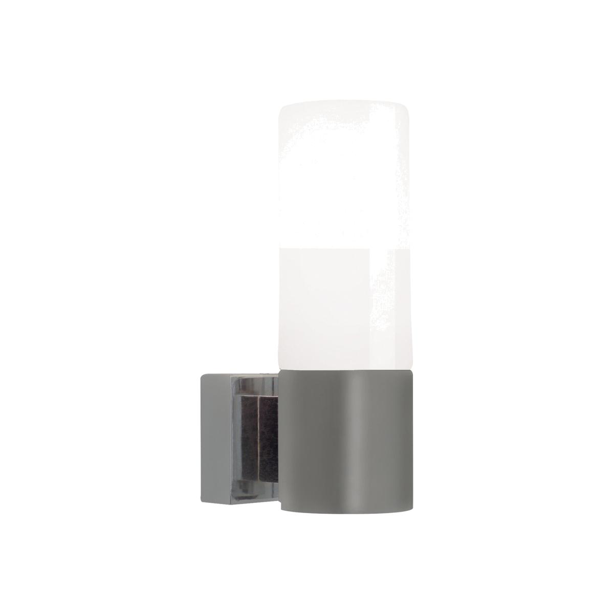 Add clear and beautiful light to your bathroom with the Tangens Bathroom Wall Lamp with brushed steel trim. It has manually blown frosted glass for soft and diffuse light and modern styling for a clean look. This fixture also comes with a 5-year LED guarantee.