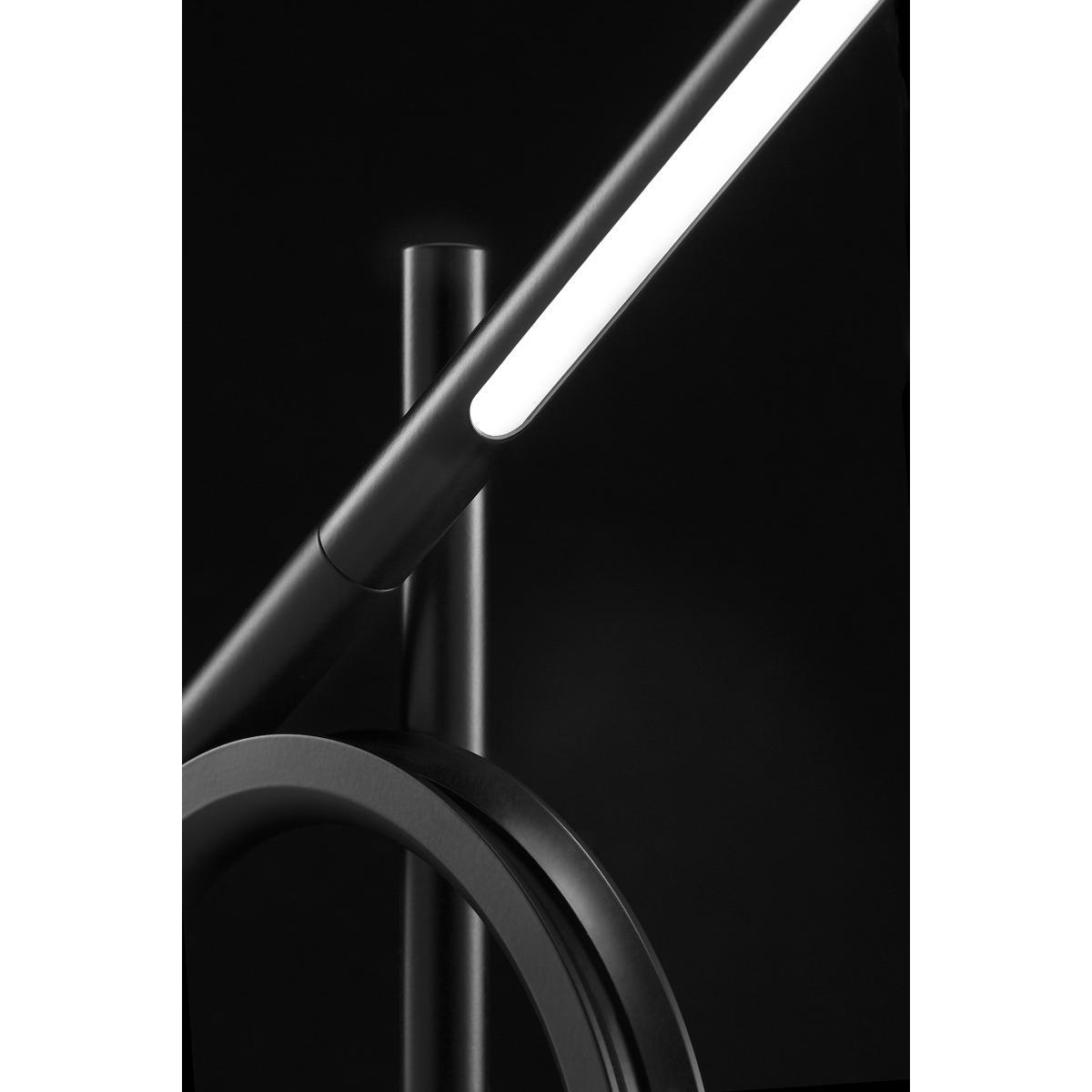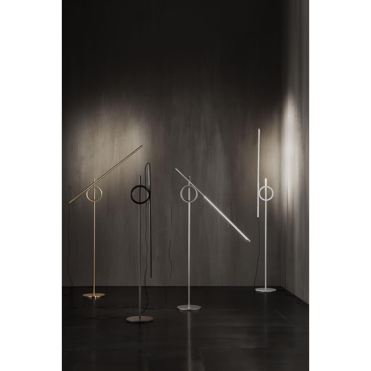 A subtle game of balance. The Tangent lamp presents a minimalist assembly of elementary geometric shapes: a circle and two intersecting straight lines. This large illuminated sculpture is brought to life by graceful movements, a bit like a mobile. The long pendulum arm containing the LED light source is fully movable to precisely direct the lighting. The long, tilting arm can rotate through 365°. Its hi-tech joint holds the arm perfectly stable in any position. Tangent lets you adjust the light as you want: the lighting options are numerous and customisable! You can direct the light however you wish to obtain sometimes direct and sometimes indirect lighting. The diffuser tube is fitted with a sensitive dimmer: simply touch it to change the intensity of the light.