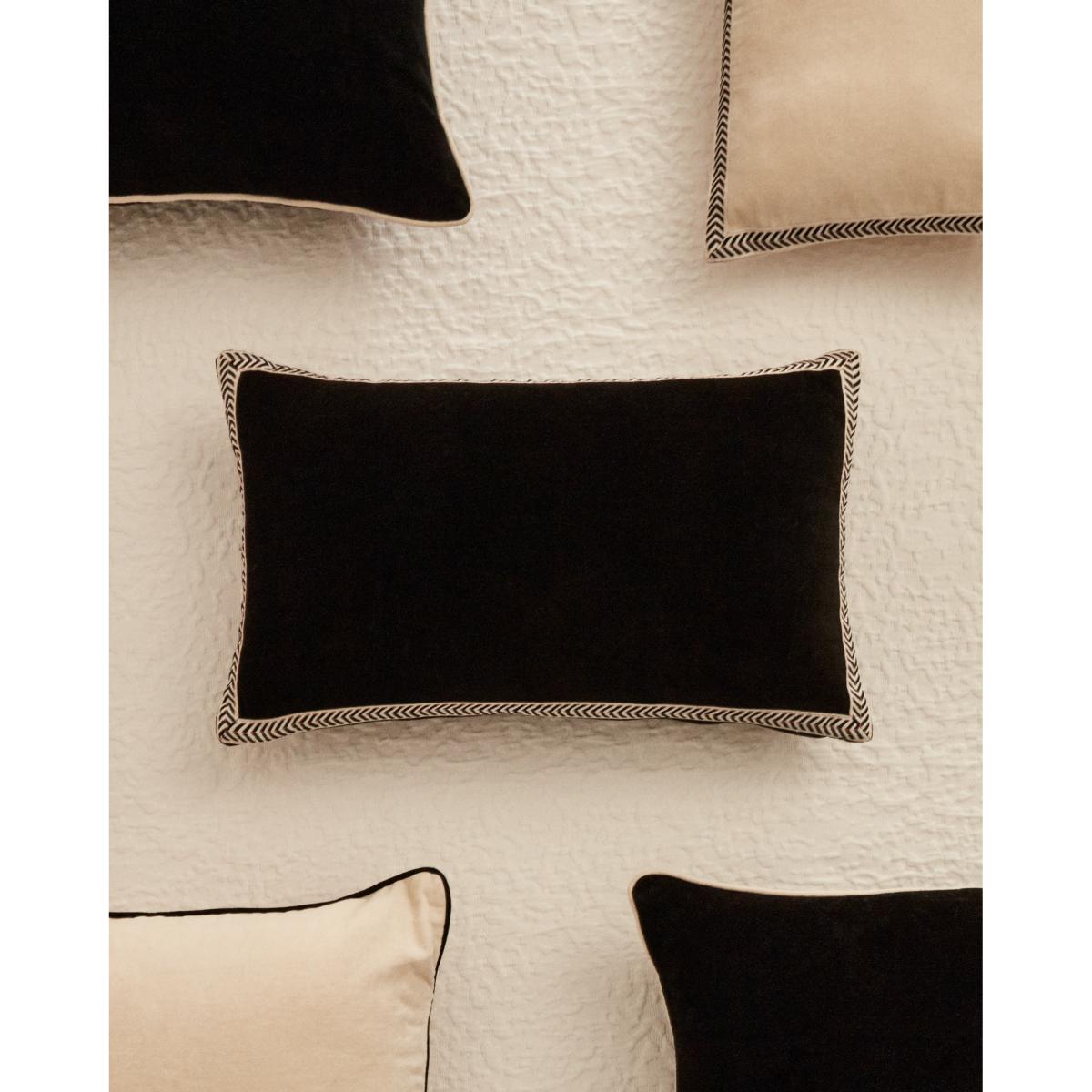 I love this cushion cover for its versatile monochrome palette and simple elegance. The black cotton base with the subtle white ribbon detail adds a refined touch that works well in both contemporary and classic interiors. It’s an easy way to add contrast and texture to sofas, beds, or armchairs. For styling, try pairing it with neutral tones or layered with other patterned cushions for a curated look. It’s especially effective in monochrome or minimalist schemes, but can also bring a touch of sophistication to more eclectic spaces. Its 30 x 50 cm size makes it ideal as a statement piece or a supportive cushion for lounging.