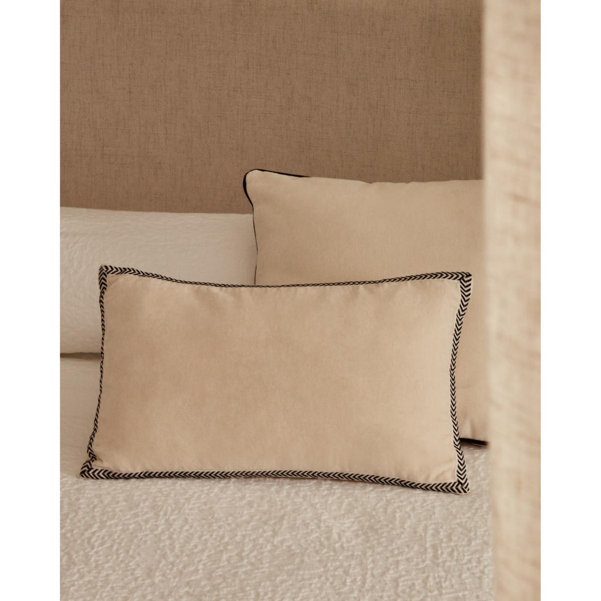 Tanita cushion cover white 100% cotton and black ribbon 30 x 50 cm