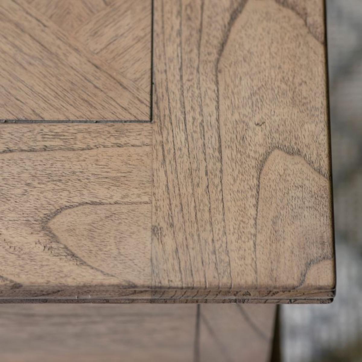 The Tansy Collection offers a wide range of living, dining and bedroom furniture pieces, crafted from Mindy wood with a stunning inlaid parquet-style design. The lightly brushed finish recreates the natural ageing effect. With its classy design and subtle finish, it offers versatile style that would suit a wide range of interiors. The large Tansy Coffee Table is stylish and practical. The top and drawer front feature the signature Mustique parquet-style design, whilst elegant turned legs add a sophisticated finish to the table.