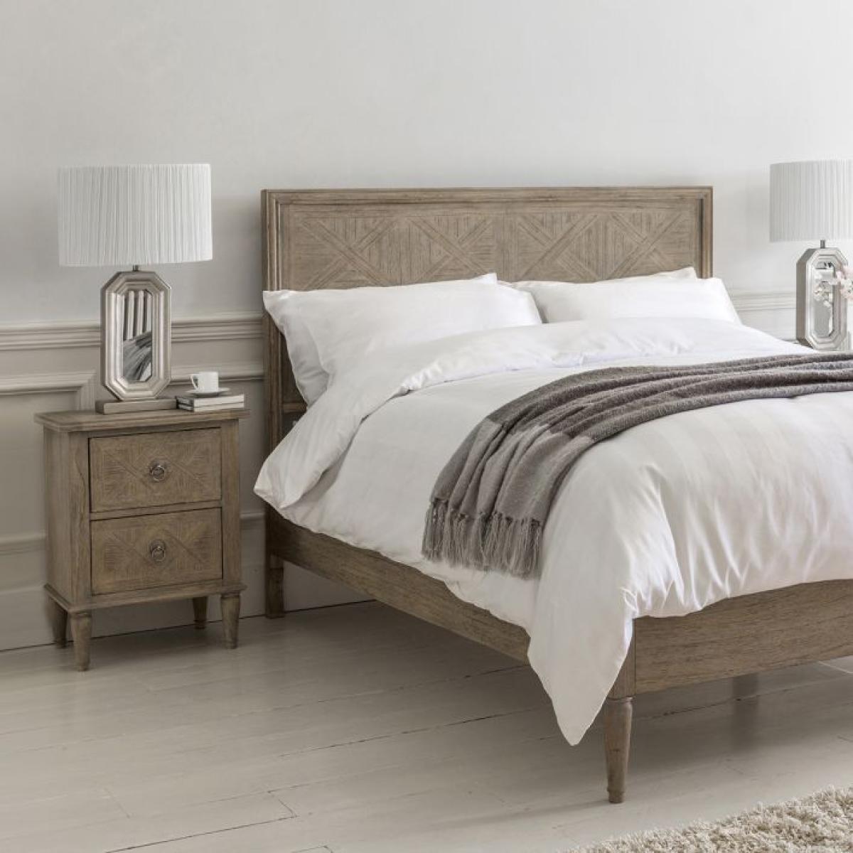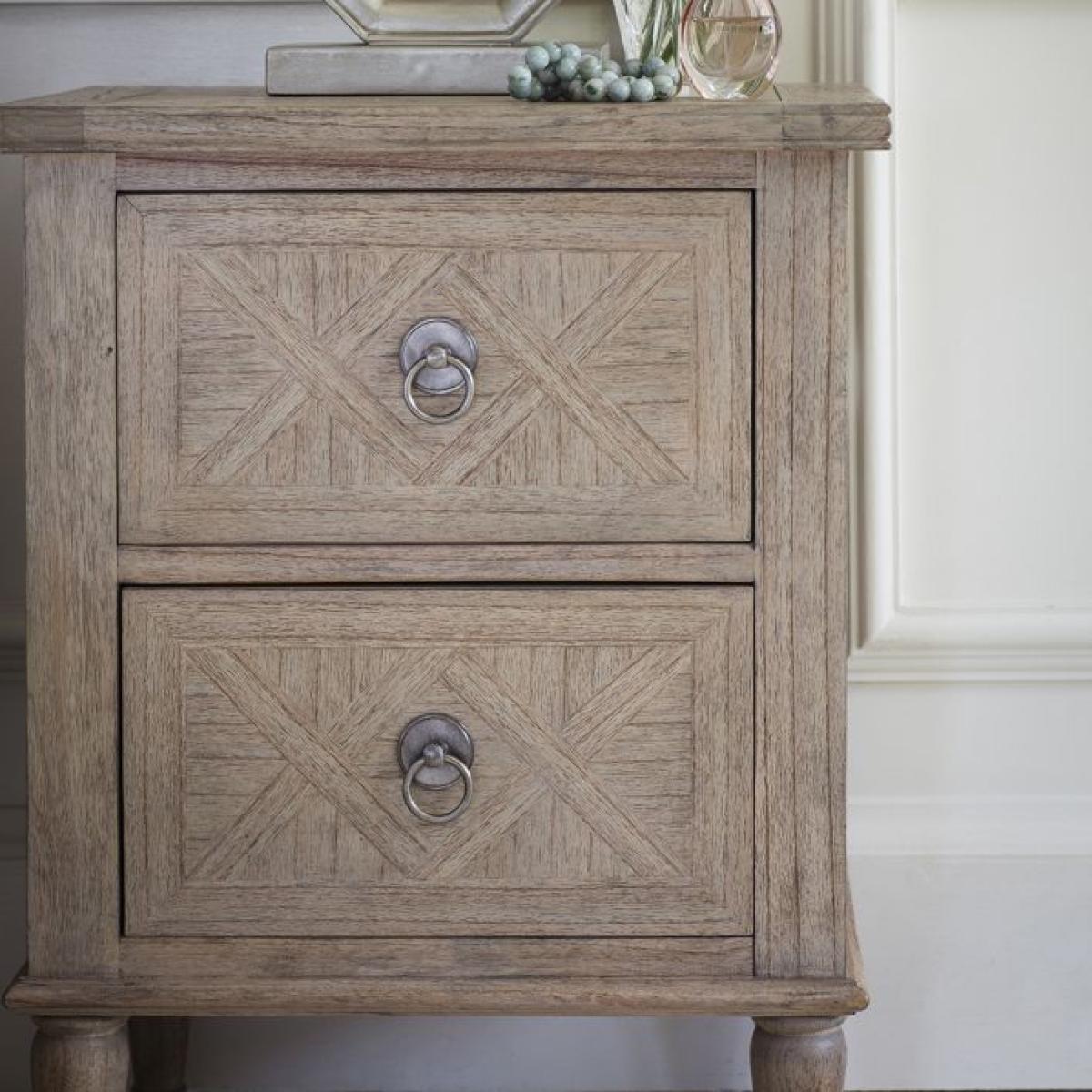 I love this bedside table for its natural, muted tones and subtle rustic charm, making it versatile enough for both traditional and contemporary interiors. It works particularly well in neutral colour schemes or coastal-inspired schemes, where its timber finish adds warmth and texture. Styling tips include keeping the surface minimal with a statement lamp or a few carefully chosen accessories to avoid clutter. The drawers are practical for storage of essentials, making it both functional and aesthetic. For a layered look, consider pairing this piece with soft textiles and natural materials like linen or jute to create a cosy, welcoming bedroom atmosphere.