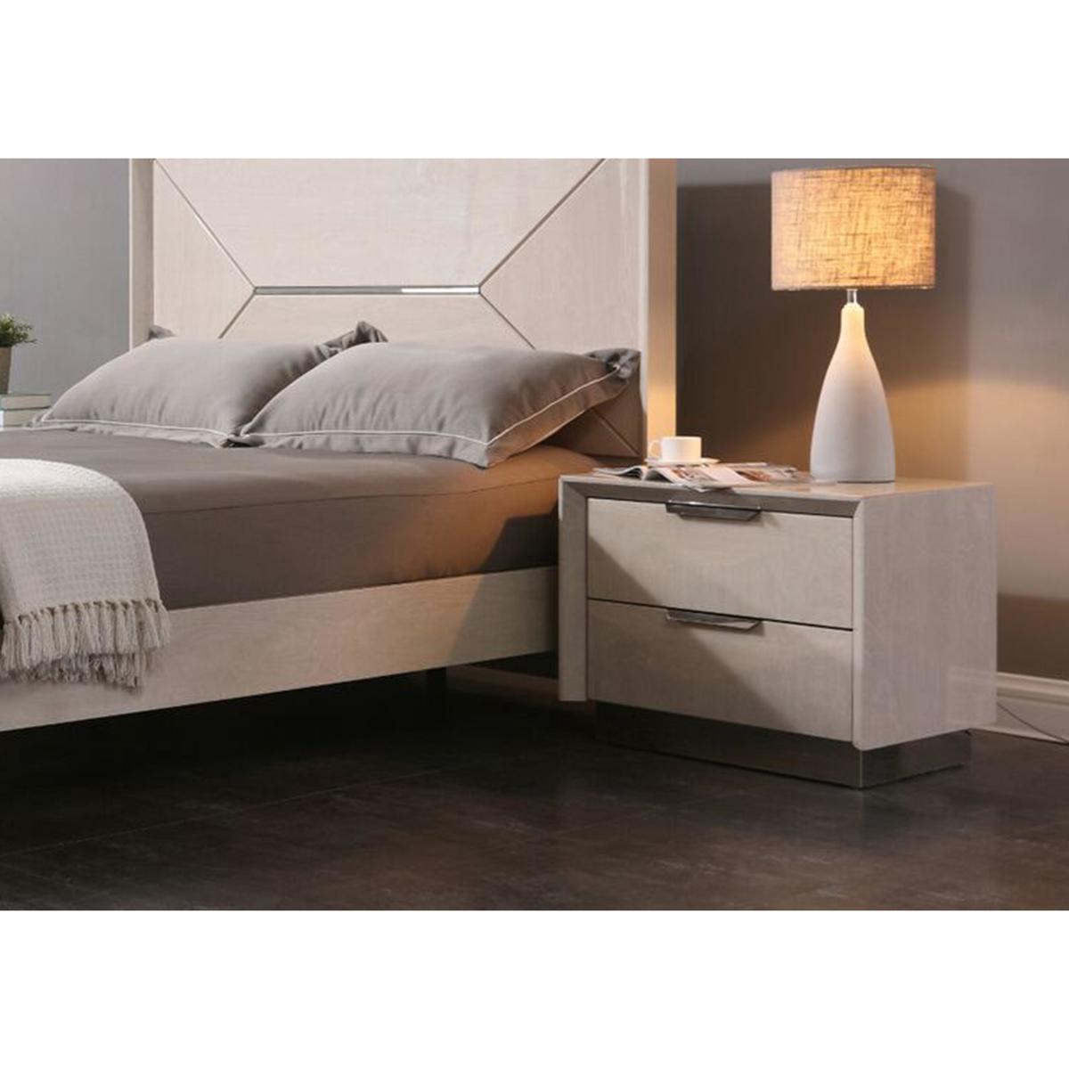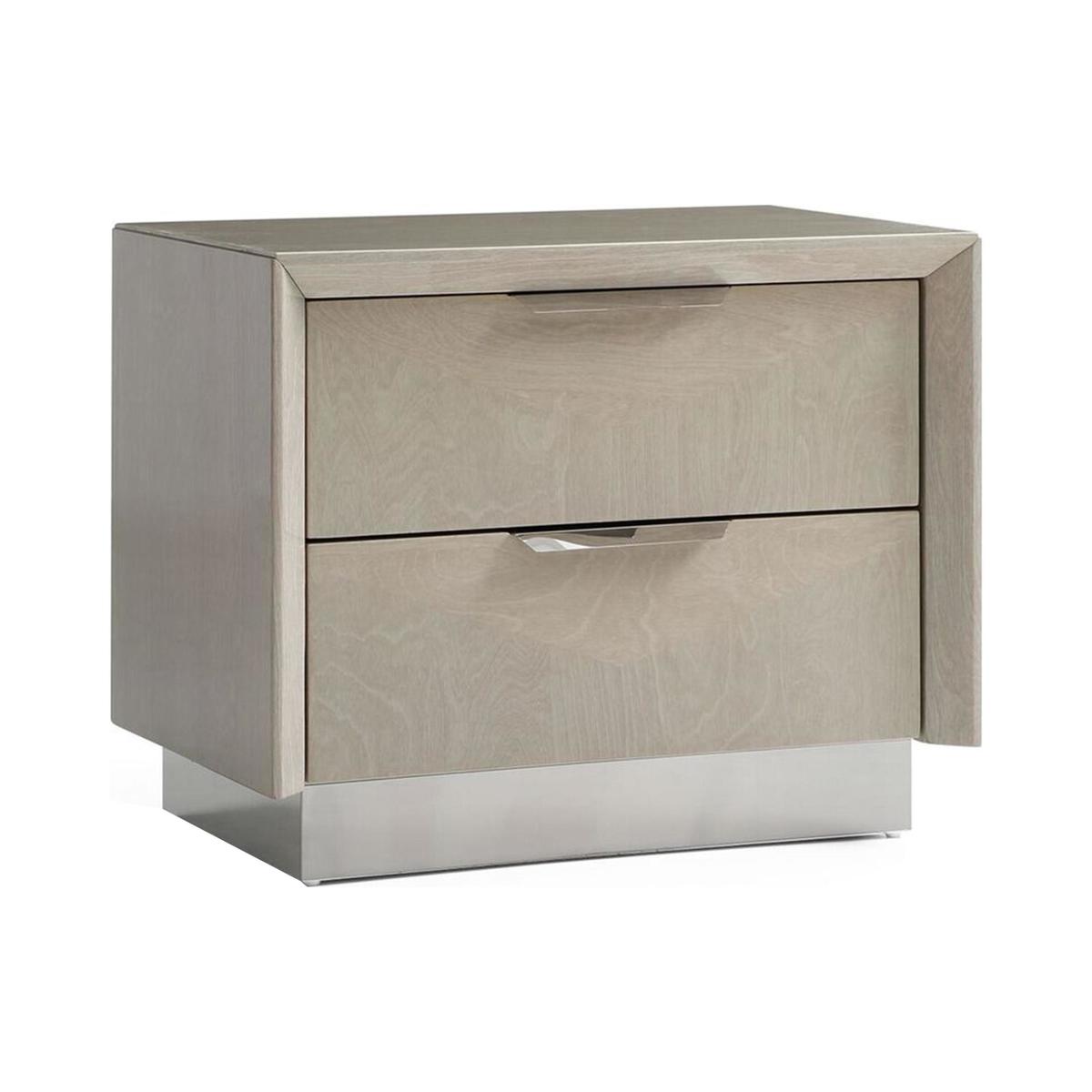 Turn your bedroom into a glamorous retreat with the Italian-inspired Taormina collection of bedroom furniture. This beautiful range features a stunning high-gloss lacquered finish with a subtle walnut wood grain-effect detail in a fashionable soft cream colour. It’s a wonderful way to add the feeling of light and space to your bedroom. Contemporary in style, this collection features touches of Art Deco elegance in the imposing bedframe with geometric headboard, the bevelled frame that surrounds each soft-closing chest of drawers, and the chrome drawer handles and plinths. Elegant Italian-inspired bedroom style. High-gloss lacquered look with walnut wood grain-effect detail. Contemporary chrome finishing touches. Every bedroom needs a bedside table, but few are as stylish as the Taormina 2 drawer bedside cabinet. Clearly inspired by high-end Italian furniture, this beautifully-crafted cabinet has two roomy drawers ensuring that it’s functional as well as lovely to look at. The soft cream-coloured high-gloss lacquer finish is gorgeous – it’s an effect that’s achieved by layering lacquer in a meticulous but highly effective process. This lacquered surface also features a walnut wood grain-effect detail for textural interest. This bedside cabinet is surrounded by a unique bevelled edge frame with mitred corners, a design device that really highlights this piece’s wonderful proportions, and it rests on a contemporary chrome plinth. Drawers are soft closing and have chrome handles. The Taormina 2 drawer bedside cabinet is part of the Taormina bedroom furniture collection which also includes two larger chests of drawers, a wardrobe and a statement bedframe. The collection is a wonderful way to bring a feeling of light and space to a smaller or darker bedroom, thanks to its soft-toned high-gloss finish. Did you know?. Hairline marks are a natural feature of this furniture's beautiful, high gloss finish.