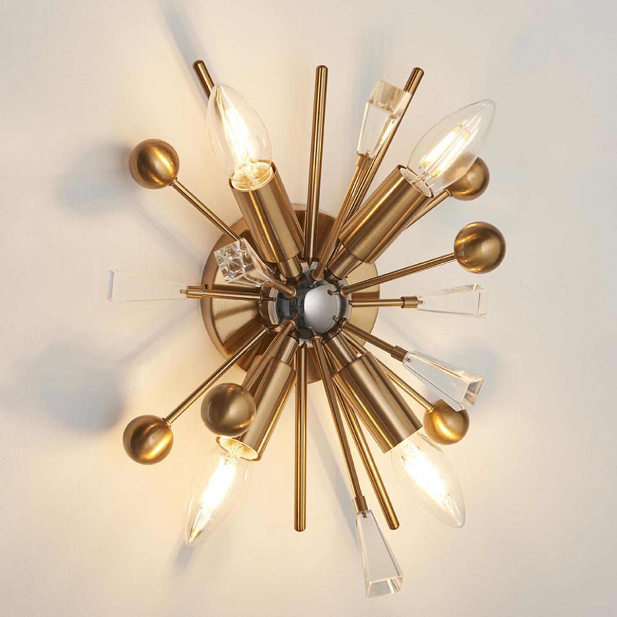 Brighten up your world with the Taorminia 4-Light Aged Brass Plate , Black Nickel and Clear Glass Wall Lamp. This 4-light fixture has an eye-catching modern aesthetic that will fit into many home decorating styles for brilliant illumination. Light up a foyer, hallway, bedroom or living space with this unique lamp.