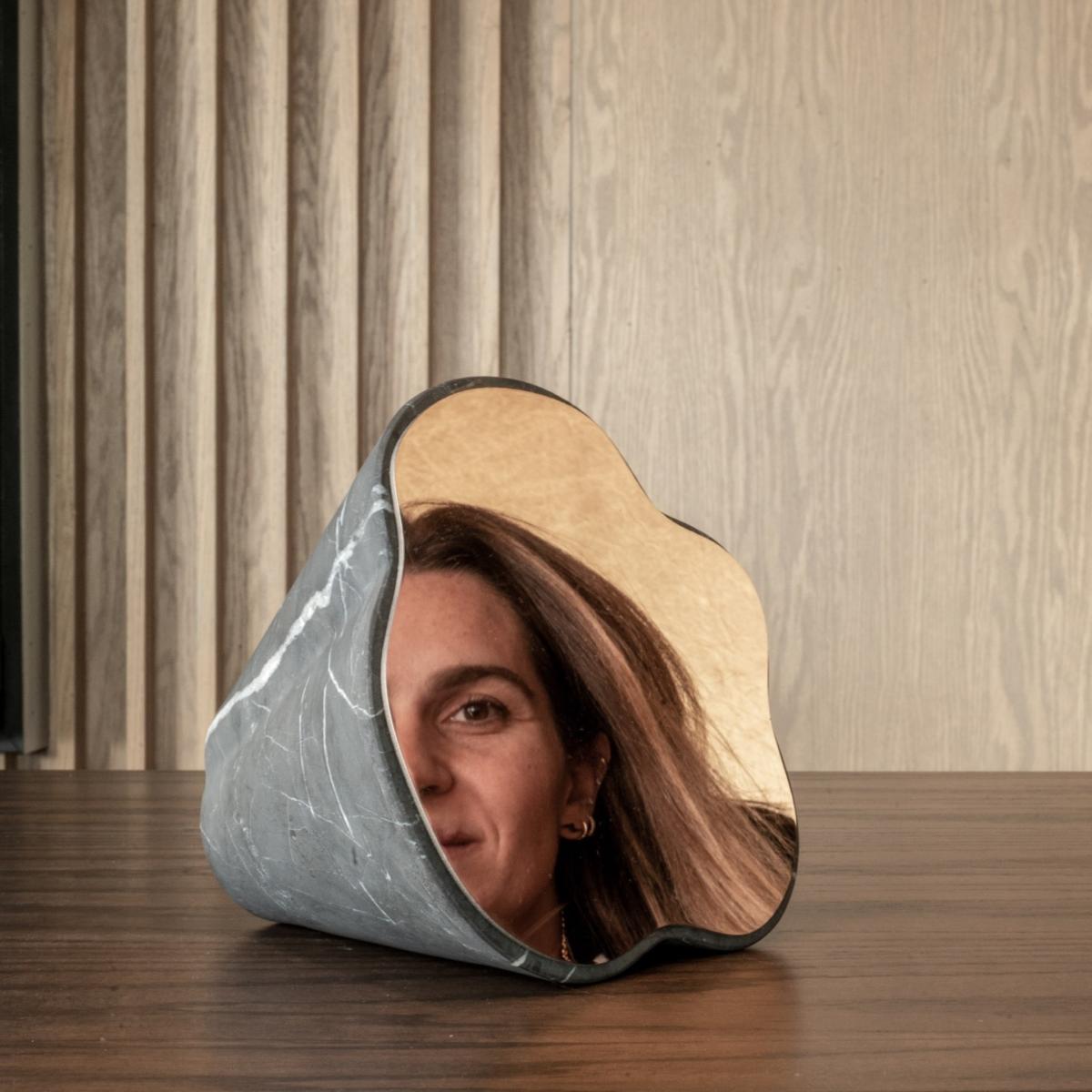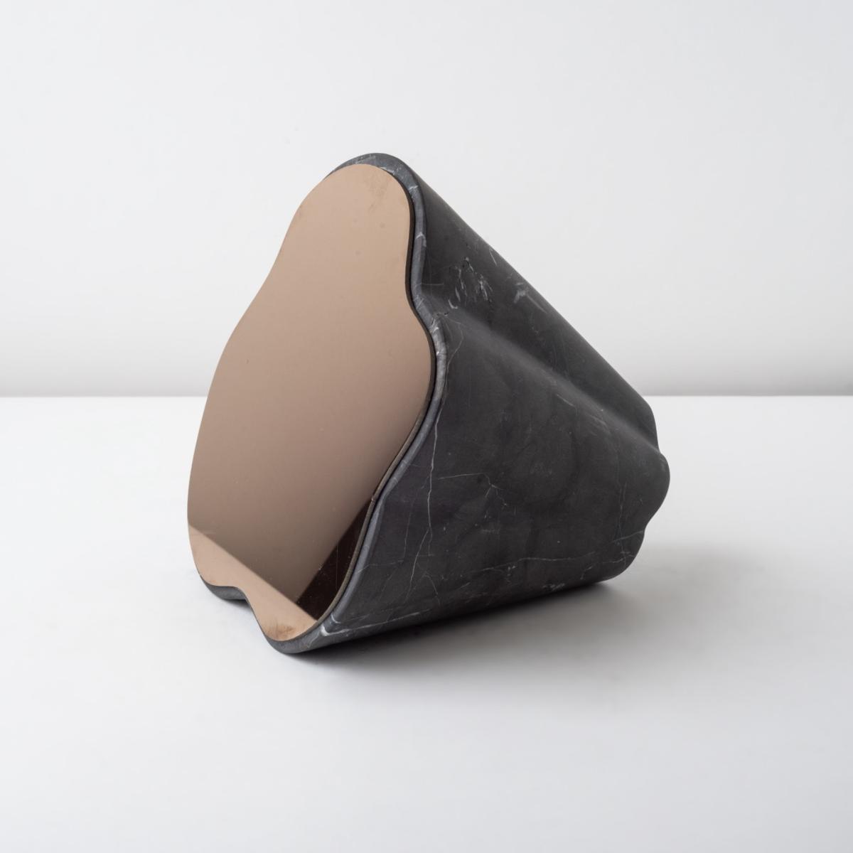 I love this black marble and stainless steel mirror because of its contemporary sculptural appeal and versatility. Its sleek, geometric form makes it a striking standalone piece, perfect for modern or minimalist interiors. It works beautifully in entryways, living rooms, or bathrooms where it can serve as both a functional mirror and an art piece. When styling, consider pairing it with neutral tones or matte textures to let its bold materiality stand out, and avoid clutter around it to let its shape do the talking. For added impact, try placing it on a floating shelf or atop a console table, allowing its sculptural silhouette to enhance your space without competing with other decor.