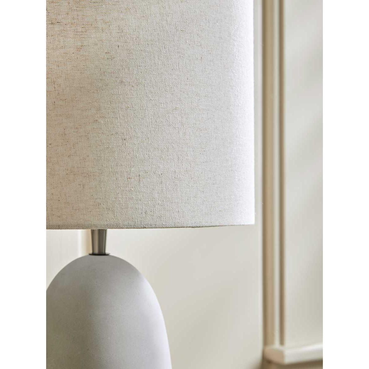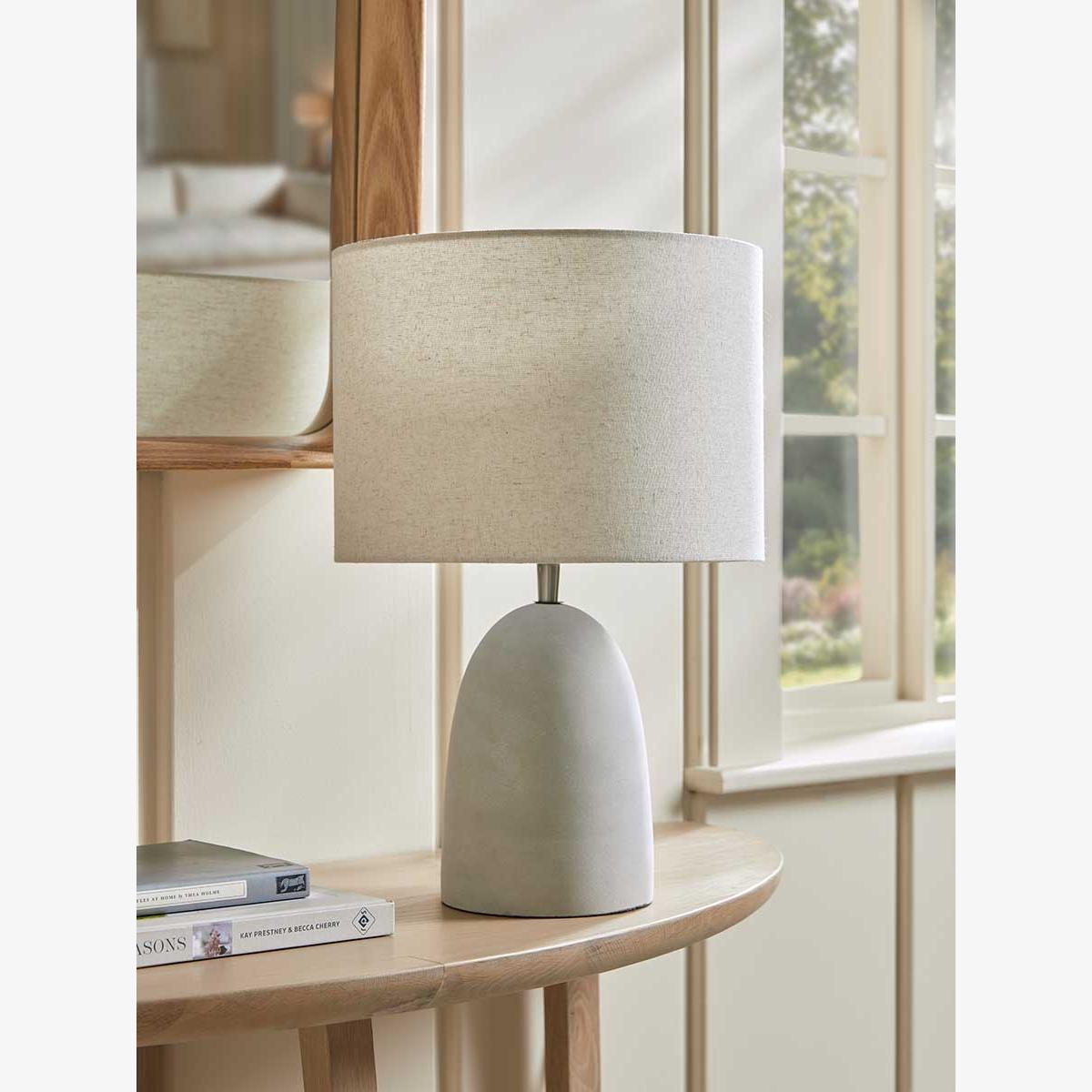 Beautifully simple and soft, the neutral shade of this table lamp adds a warm and comforting glow to your home. A soft, tapered base made in neutral tones works with the natural and organic look of the concrete material, perfect for a simple, minimalist scheme.  Discover how to create the perfect lighting scheme for your home using our Lighting Buying Guide.