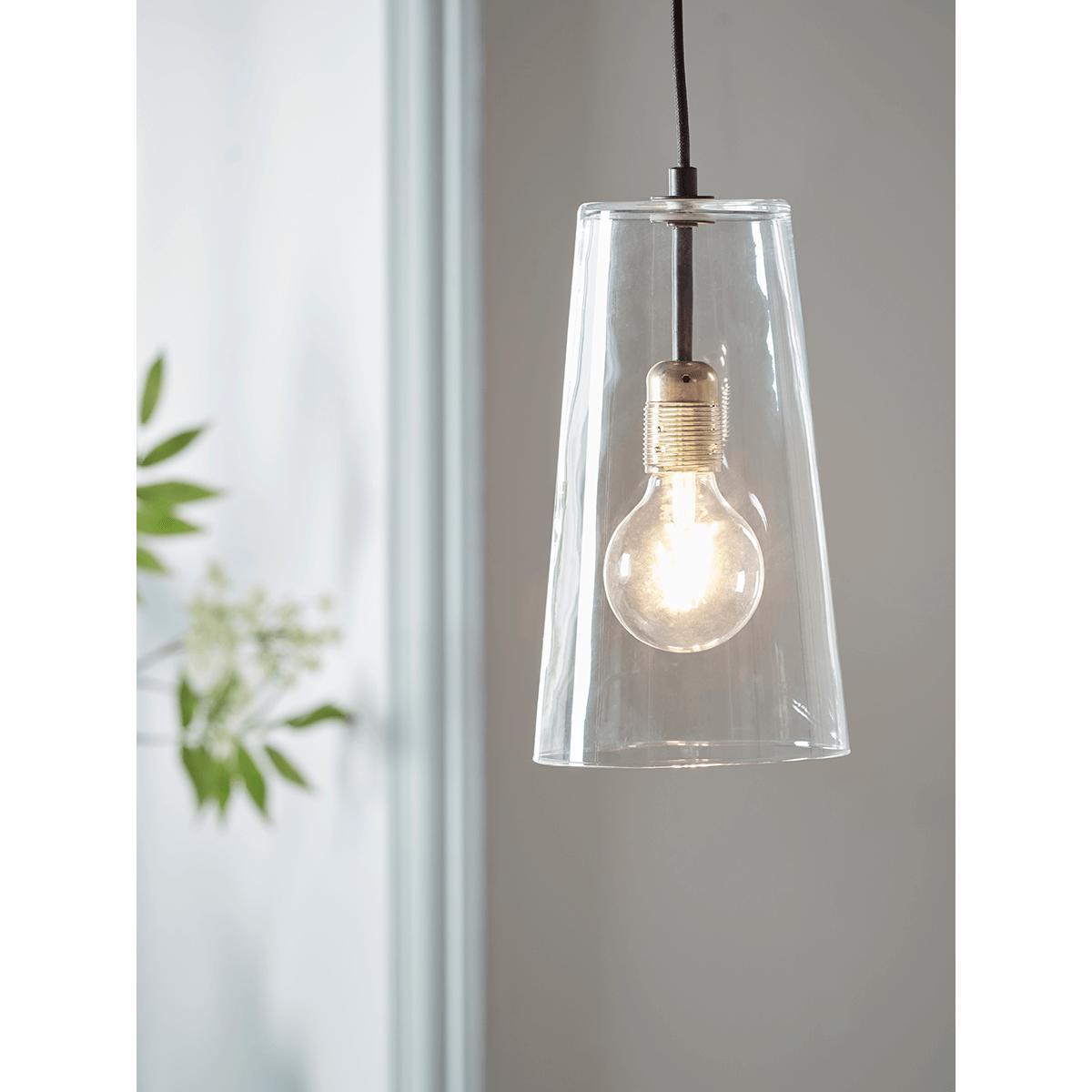 I love this pendant’s minimalist design, which makes it incredibly versatile for various interior schemes. Its tapered glass shade creates a clean, modern look that works particularly well in contemporary, Scandinavian, or industrial settings. The transparency of the glass allows the bulb to be a feature in itself, so opting for an interesting filament or vintage bulb can enhance the overall aesthetic. Practical styling tips include hanging multiple units in a row over a kitchen island or dining table to create a cohesive statement, or using it solo in a nook for a subtle yet stylish touch. It pairs beautifully with both neutral palettes and more colourful, eclectic interiors, adding a sleek, understated focal point.