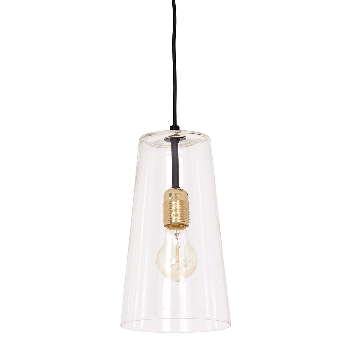 Make a feature of your lighting with our contemporary mouth blown glass pendant. This beautiful conical shape pendant features a brass fitting with black fabric flex, and comes complete with a matte black metal ceiling rose.