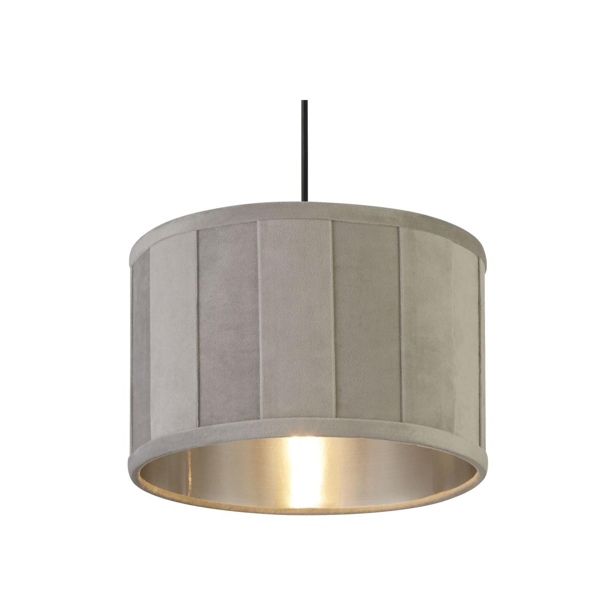 This luxurious velvet light grey pleated shade embodies a trendy and contemporary style. Its chic design not only adds a touch of elegance but also brings a modern aesthetic to your space, elevating the room's ambiance with sophistication and flair. Bulb not included. We recommend a 1 x B22, E14 or E27 bulb.