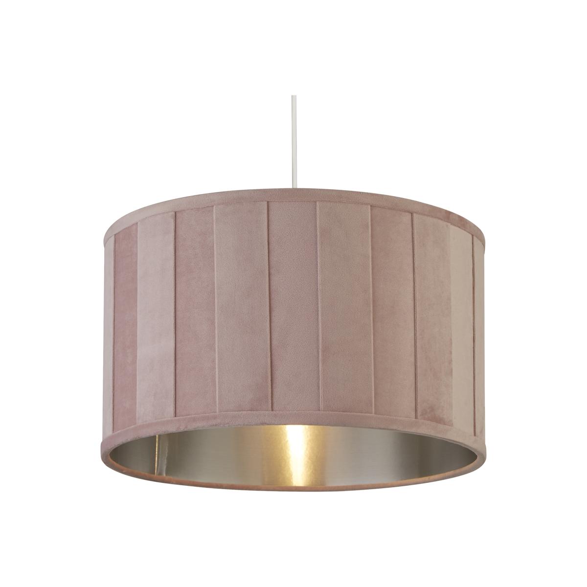 Ideal for any room in your home, this beautiful pink velvet shade with contrast metallic inner will add elegance to any ceiling light or lamp base.