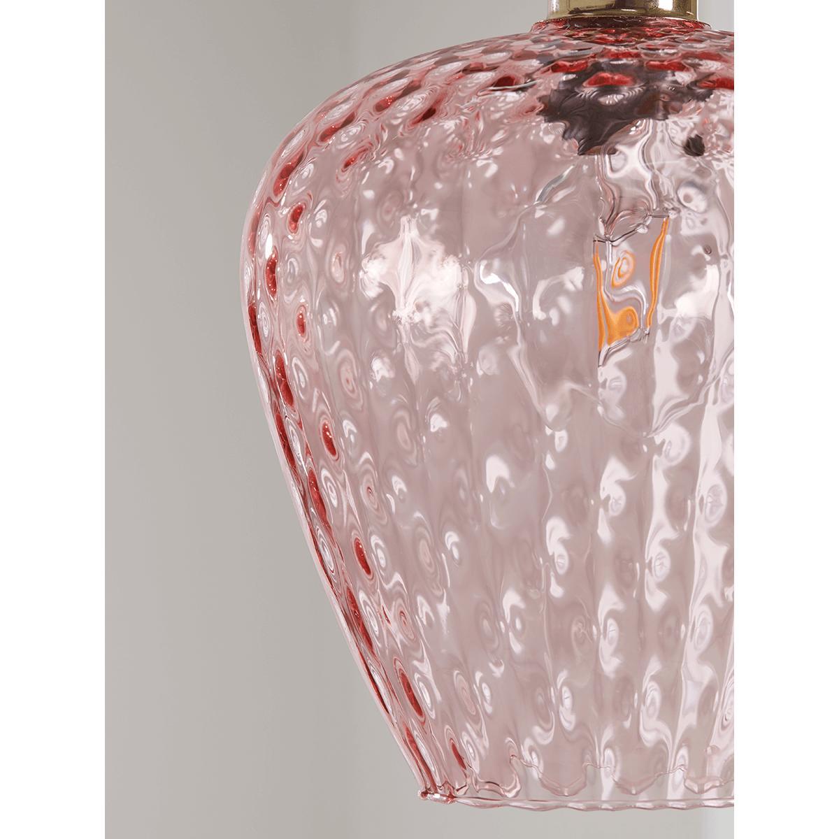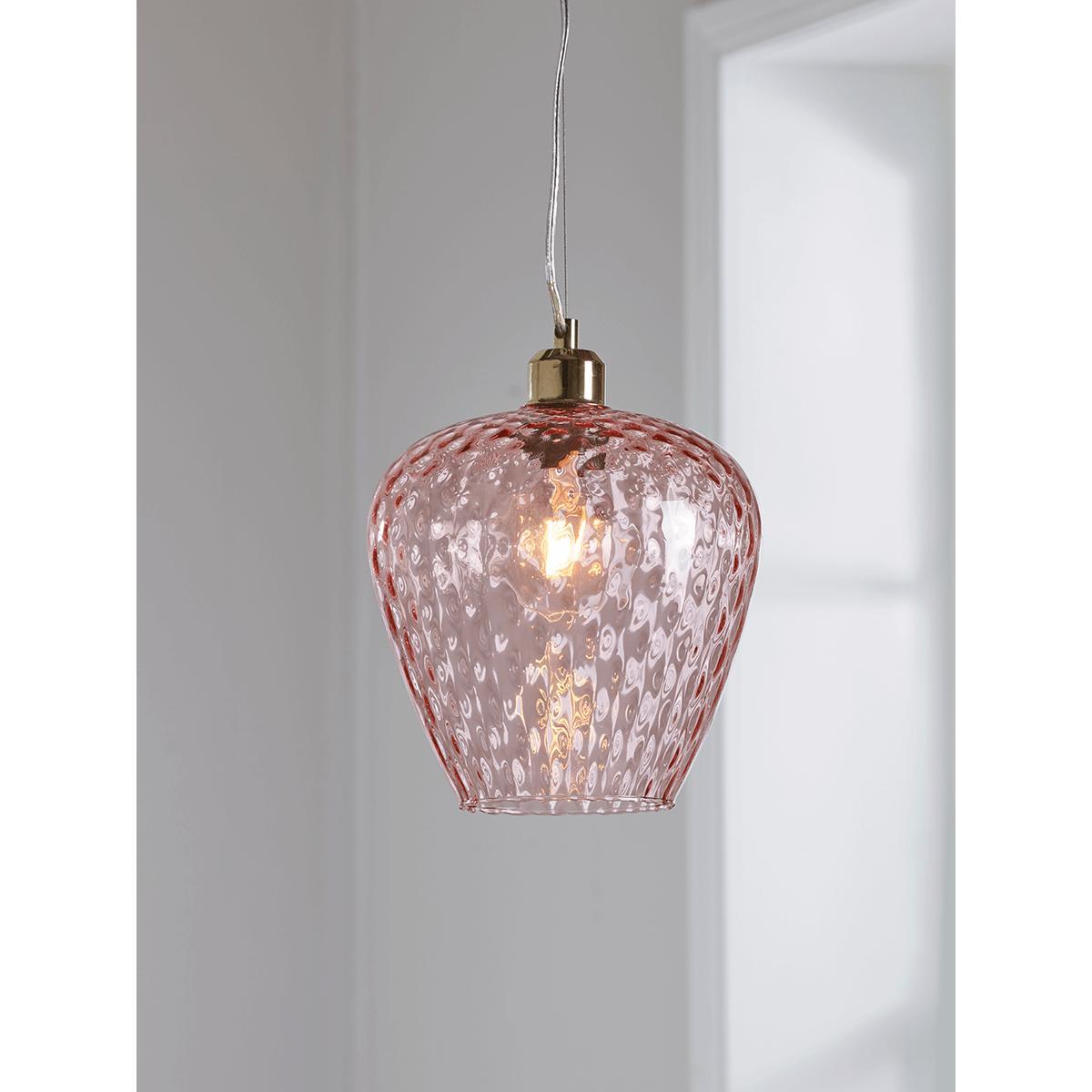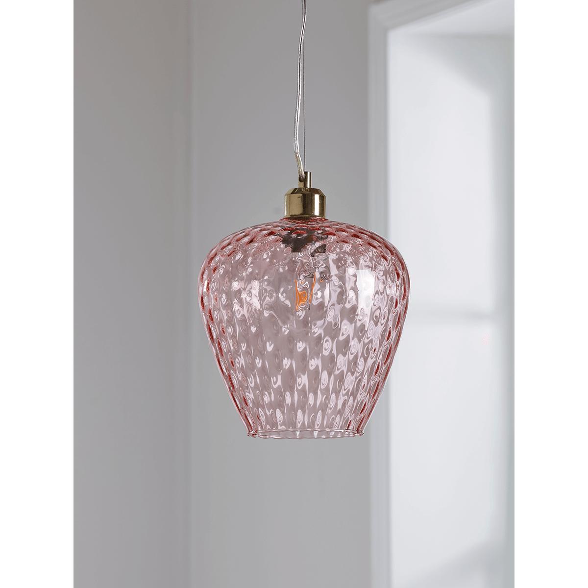 A beautiful urchin shaped glass shade, that comes with a dimple patterned surface to present a wonderful light ripple around your space. With a blush tone to the shade, and complementing gold finished top and matching ceiling rose, this stylish pendant will set a gentle mood light and add an attractive decorative element to any room.