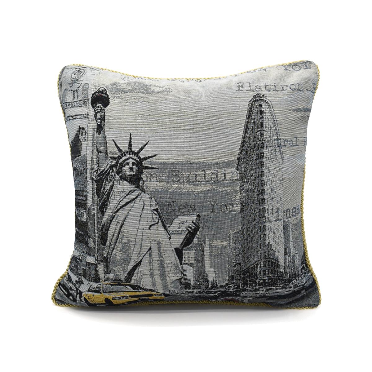 Tapestry Filled New York Cushion - Grey