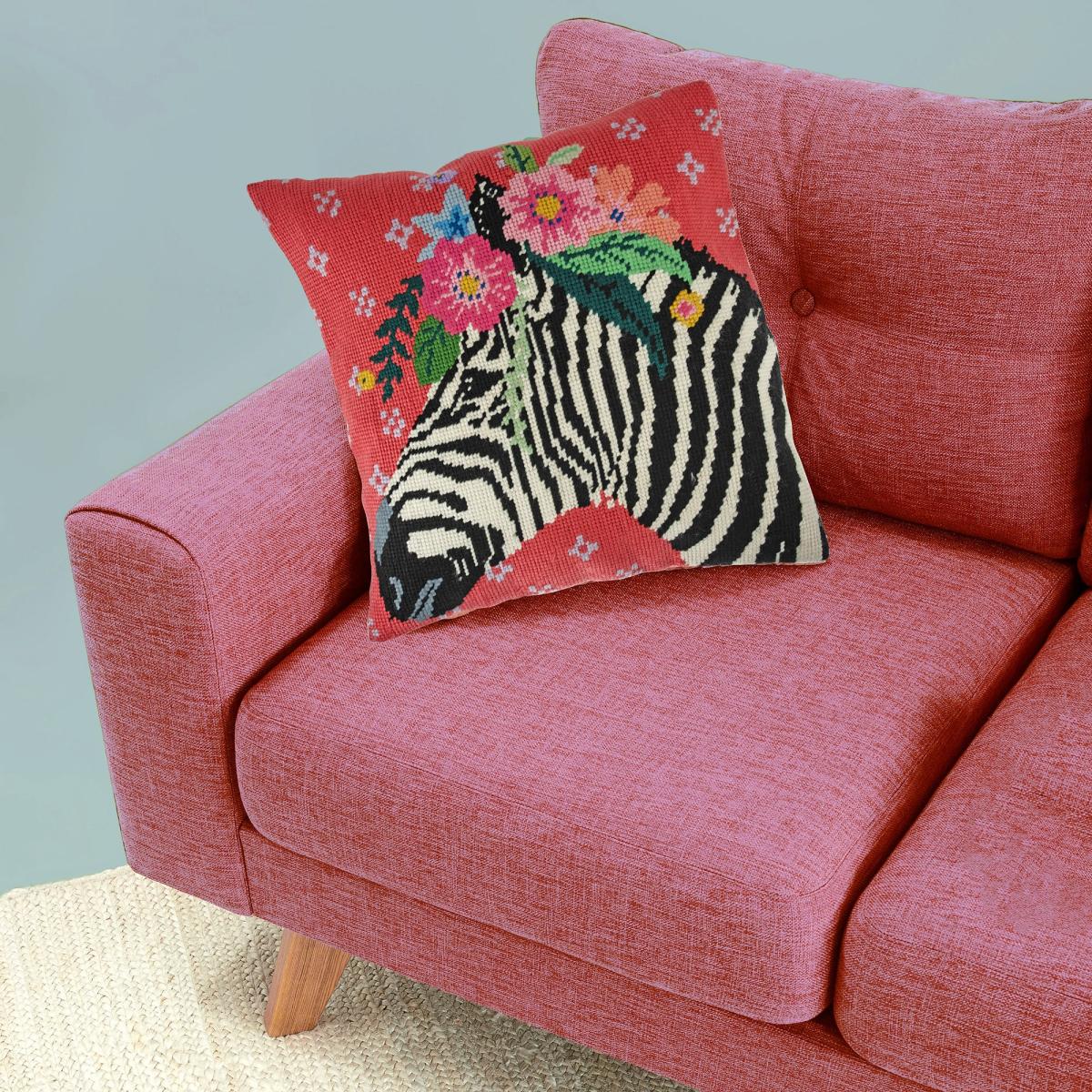* Bold zebra design * Great gift idea * Easy to follow instructions Add a bold and stylish touch to you home with our half stitch cushion kit featuring a striking zebra design. Bring the beauty of the safari into your home with this lovely design, perfect for crafters of all levels, this easy to follow kit lets you create a beautiful handmade cushion in no time. As well as everything you need to create this masterpiece this kit includes a cotton cushion back with a convenient zip. Get crafting now and add the perfect statement piece to your home.