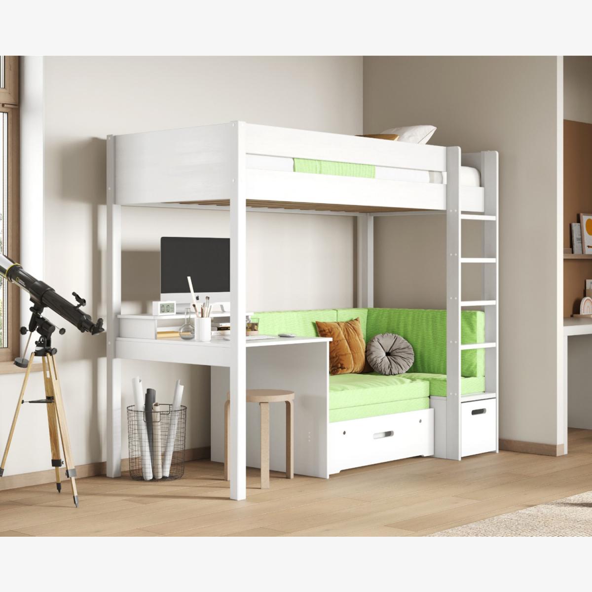 Elevate your child's room with the Flair Noomi Tapio White Highsleeper!This versatile piece combines functionality and style, featuring a chic white frame, a striking futon sofa, and a convenient desk. Whether it's study time, relaxation, or sleepovers, the vibrant futon adapts effortlessly, and with a range of available futon colours, including black, blue, green, grey, pink, and, of course, red, you can customise the look to match any decor. Maximise space and foster creativity with this all-in-one high sleeper - where comfort and design meet perfectly. Why Choose A Noomi Product? Noomi uses responsibly sourced wood. Measures are put in place to prevent illegal logging, protect fragile ecosystems, and eliminate clear-cut areas and pesticide use. Noomi uses only ethically sourced Solid Scandinavian pine, which grows straighter, more robust and with fewer knots due to the cold atmosphere in the Nordic regions.