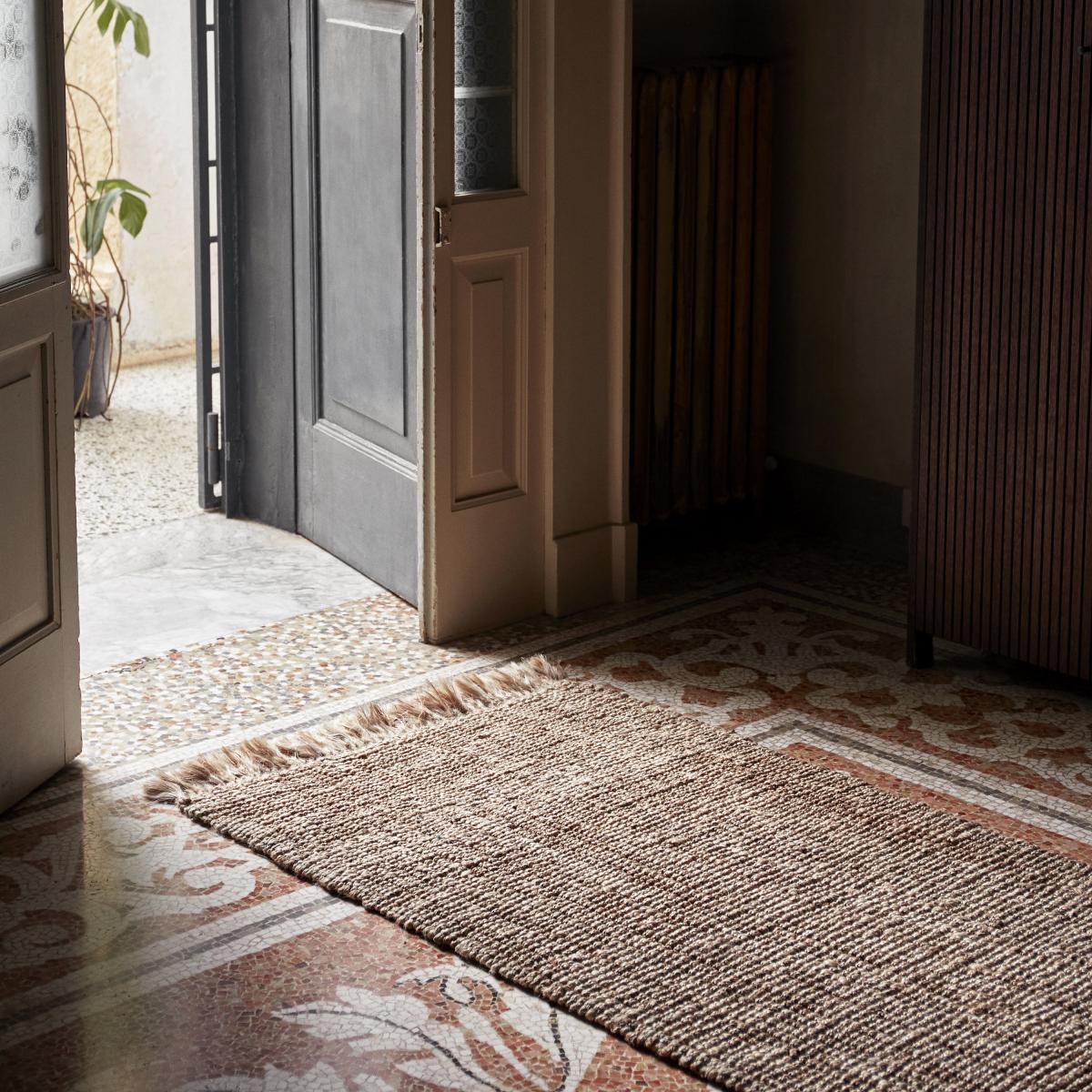 Bohemian trend... This hessian rug takes its inspiration from the Mediterranean landscape. It adds a natural, traditional feel to your interior. The Athens rug, which features a lovely textured design, is made from natural hessian. The soft, full fringing further emphasizes the relaxed design. Each rug has been carefully woven by hand. Use this long Athens Runner rug in your corridor to add a natural, welcoming touch to the room.