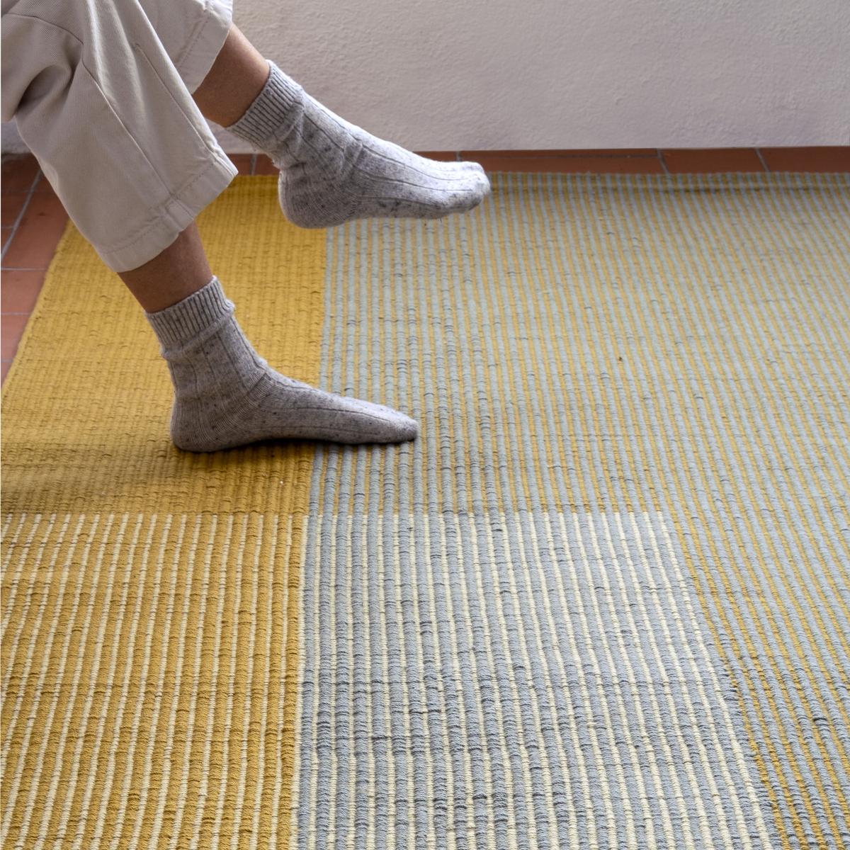 Created by Turkish designer Begüm Cana Özgür, the Haze collection is inspired by the harmony of nature's colours when mist appears. In perfect visual balance, the colours coexist and interact: they emerge and gradually disappear. Haze is a rug designed directly on the loom: the designer experimented extensively with chromatic interactions and fading by mixing colours. This collection is the culmination of a reflection on the meaning of colour contrast (tone, value, temperature and saturation). The simplicity of the graphic aspect gives way to the power of colour. Designer Bégum Cana Özgür: "At the loom, I developed a weaving technique which gradually shifted the predominance of one colour to another. The emotion produced by this fading effect resembled scenes in which atmospheric haze flattens the colours of nature." The design was developed from two angles: on the one hand, the colours themselves and their interactions, and on the other, the design, i.e. the superficial graphic lines which follow the warp. The challenge was to find the right balance between graphics, number of warps and weft thickness. Haze is woven with 50% New Zealand wool and 50% Italian wool, a noble, warm material, easy to look after and durable. As Begum Cana Özgür points out, “This fibre re-establishes in us this connection with the earth and nature that we often lack in modern buildings.” nanimarquina combats child labour and is committed to improving the standard of living and education of people working in the rug manufacturing sector in India, Pakistan and Nepal. All nanimarquina rugs carry the Care & Fair logo, proving that the rugs have not been woven by children. 1% of sales is donated to finance the Care & Fair association's schools, training and health programmes, and hospitals.