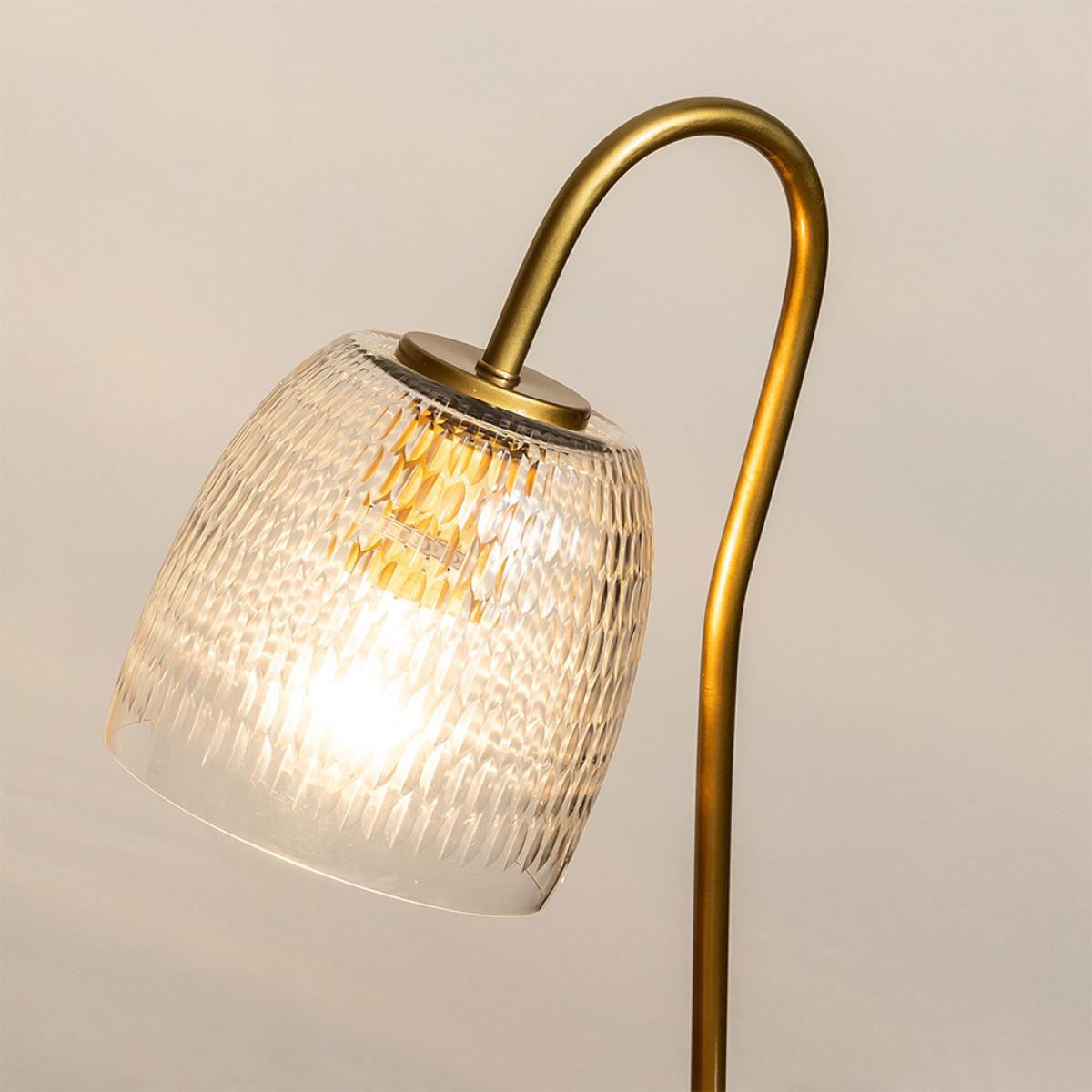 With a Mid Century-inspired design featuring an elegant curved stem, this brass and glass table lamp adds timeless appeal to any space. Tara comprises a clear-glass shade with a subtle hammered texture on a curved antique-brass stem that sits on a white marble base. Whether taking pride of place on a desk or side table, the lamp is a welcome addition to any home.