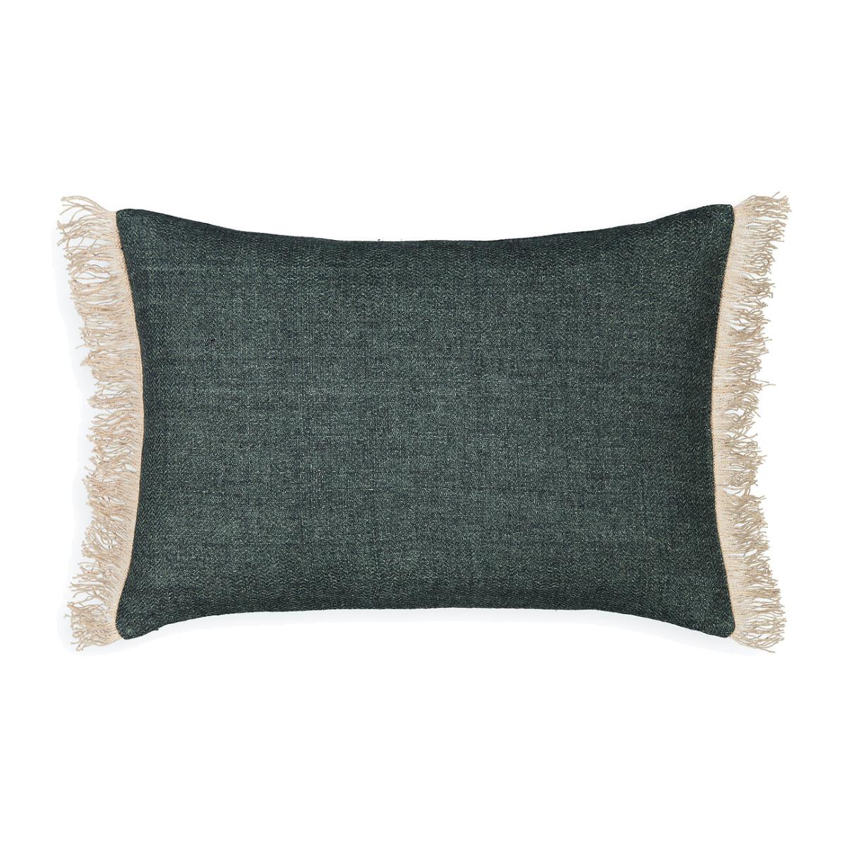 The depth, softness and freshness of a large dyed linen thread. With its long, fine fringes in contrasting colours, the Taram cushion cover enhances the elegance of a bed, sofa or armchair. Product Details • 100% linen • Plain cushion cover • Fringed trim on either end • Concealed zip fastening. Care Advice Follow our care tips to maintain the quality of your linens • Dry clean only. Size • 60 x 40cm Origin of the product and manufacturing steps• Linen fibre: Western Europe (France, Belgium or the Netherlands)• Weaving : Europe