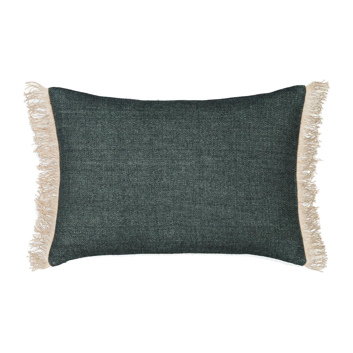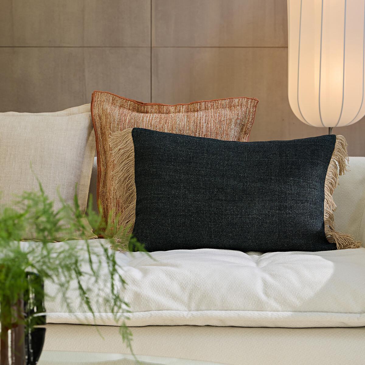 The depth, softness and freshness of a large dyed linen thread. With its long, fine fringes in contrasting colours, the Taram cushion cover enhances the elegance of a bed, sofa or armchair. Product Details • 100% linen • Plain cushion cover • Fringed trim on either end • Concealed zip fastening. Care Advice Follow our care tips to maintain the quality of your linens • Dry clean only. Size • 60 x 40cm Origin of the product and manufacturing steps• Linen fibre: Western Europe (France, Belgium or the Netherlands)• Weaving : Europe