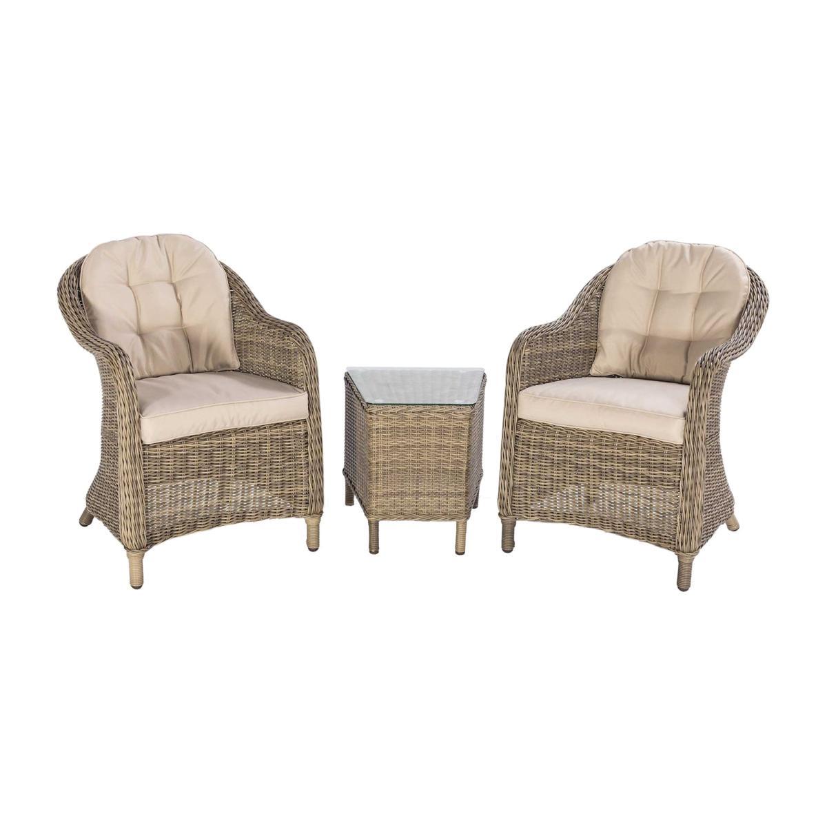 Taransay 3 Piece Garden Lounge Set in Natural Weave and Beige Fabric