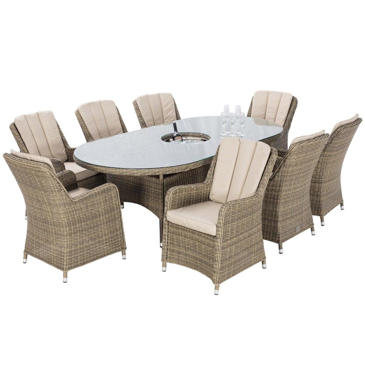 Taransay 8 Seat Oval Ice Bucket Dining Set with Venice Chairs & Lazy Susan, Neutral | Barker & Stonehouse