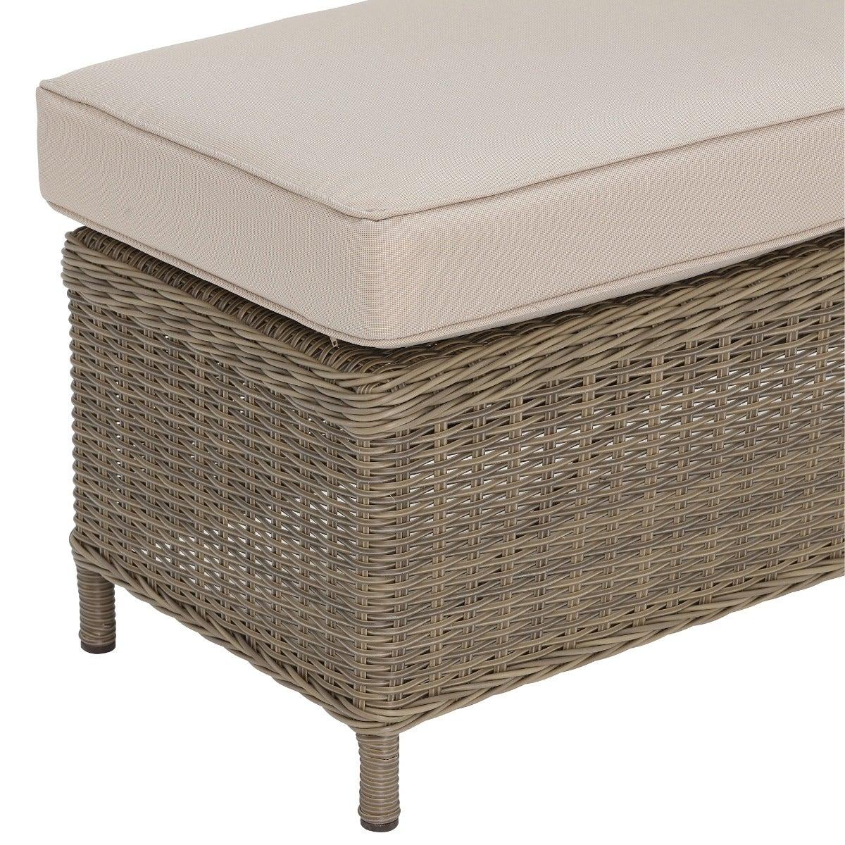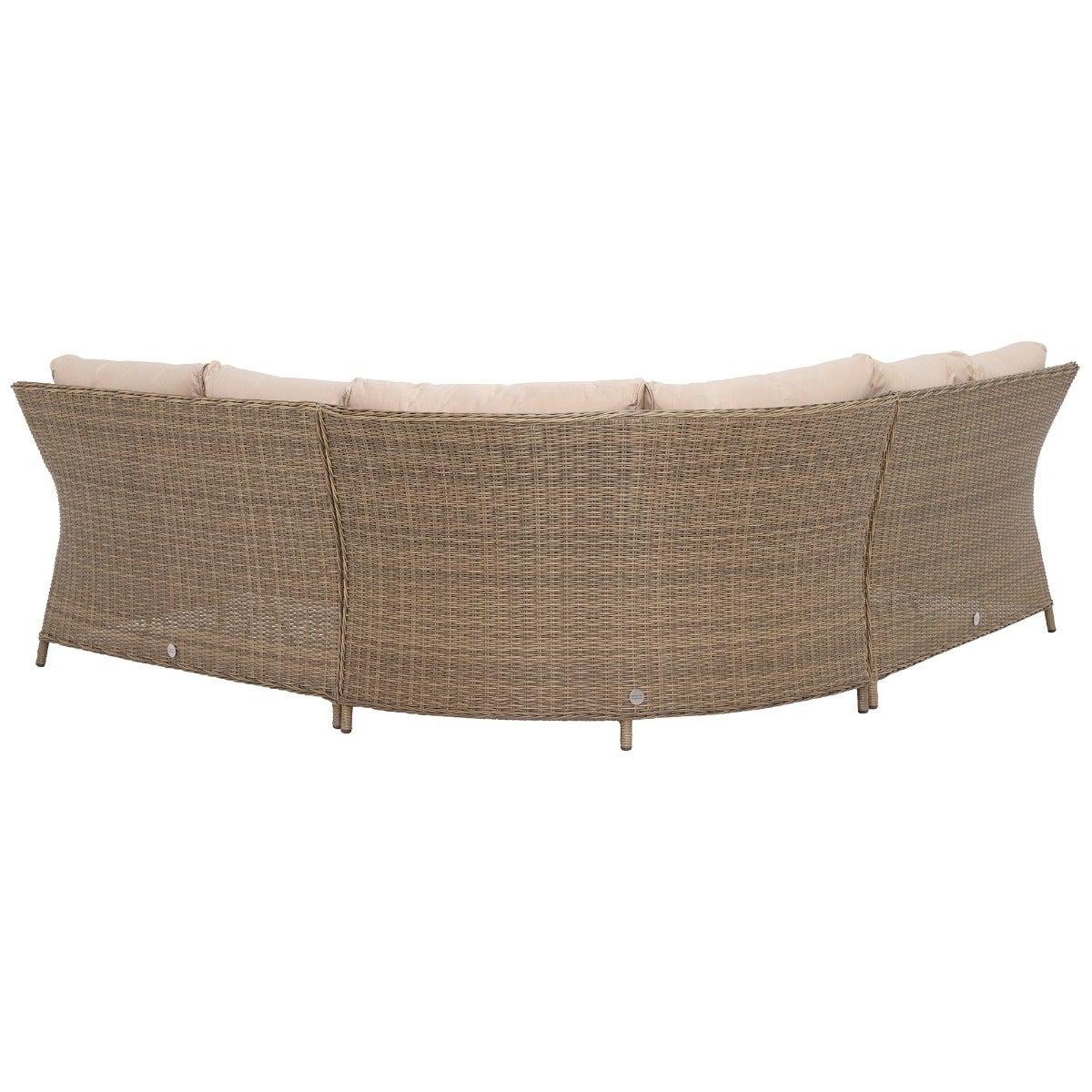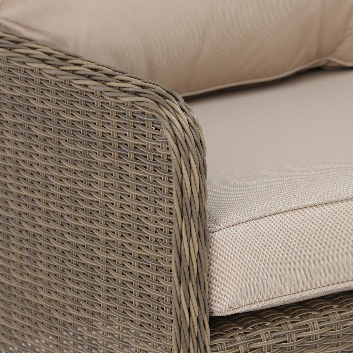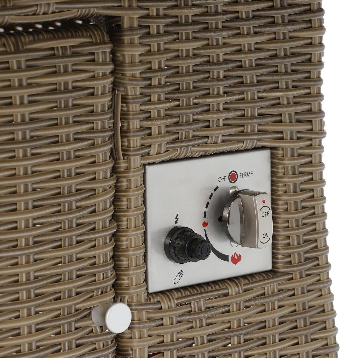 Design. Dine in style with the Taransay Royal Garden Corner Dining Set. Hand woven round weave rattan is a quintessential design feature that is UV protected and hard wearing. The sofa comes in 3 sections making it easy to store during the colder months and straightforward to put together for long summer days spent lounging in the garden. High strength aluminum has been incorporated into each seating part to provide durability and support. Tempered glass makes up the tabletop that is complete with a built-in fire pit, which requires a gas bottle that can be discreetly stored beneath the table, and a lazy susan which makes entertaining that little bit easier.
