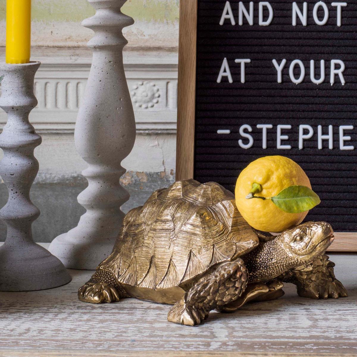 A quirky character, Tarantino the Tortoise is the perfect family pet. Made from resin with a painted gold finish, this unique creature instantly adds luxury and intrigue to any space, making him a great addition to your home.
