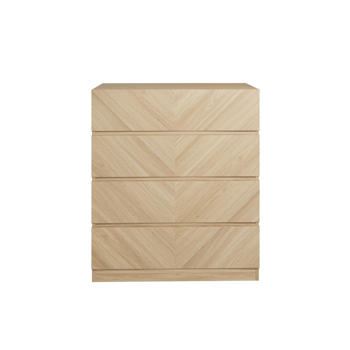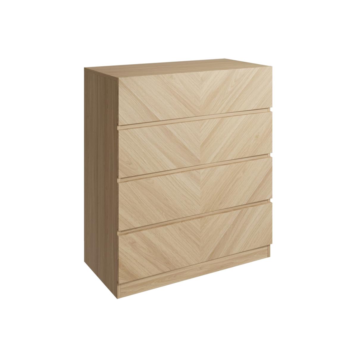 I’m a big fan of this oak chest for its clean lines and subtle chevron pattern - it works effortlessly in Scandinavian, coastal or contemporary schemes. The light Euro oak finish brings warmth without overpowering, and the recessed drawer fronts keep the look minimal. For styling, tuck a low-profile lamp or a simple ceramic vase on top and balance it with a framed print or round mirror above. Inside, use dividers or fabric boxes to keep clothes or linens neat. Pair with soft-textured rugs and a few potted plants to soften the linear form and add a cosy feel.
