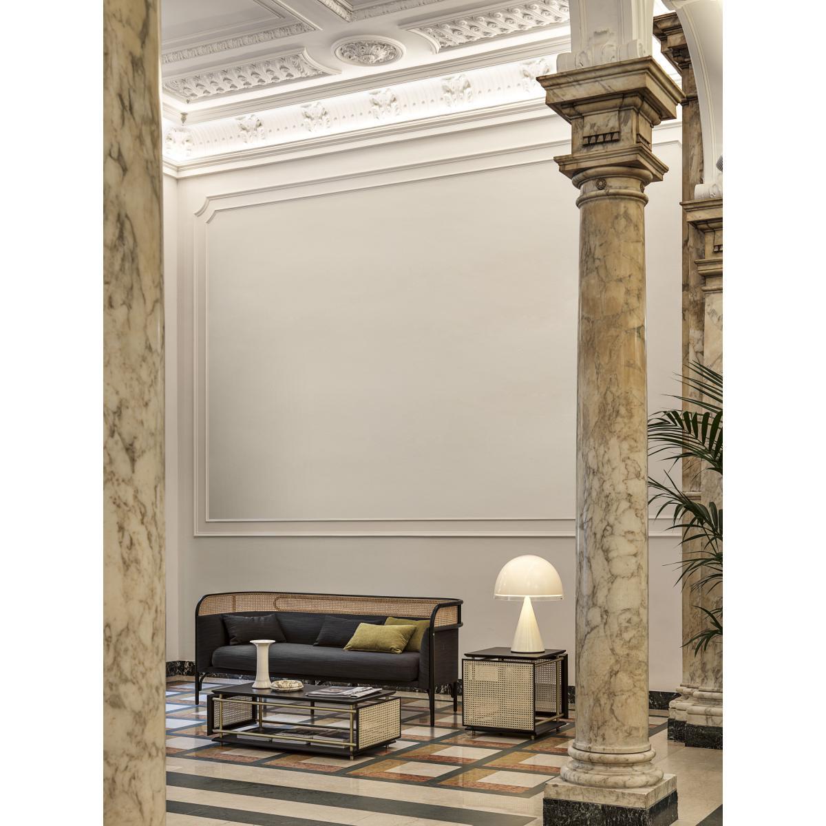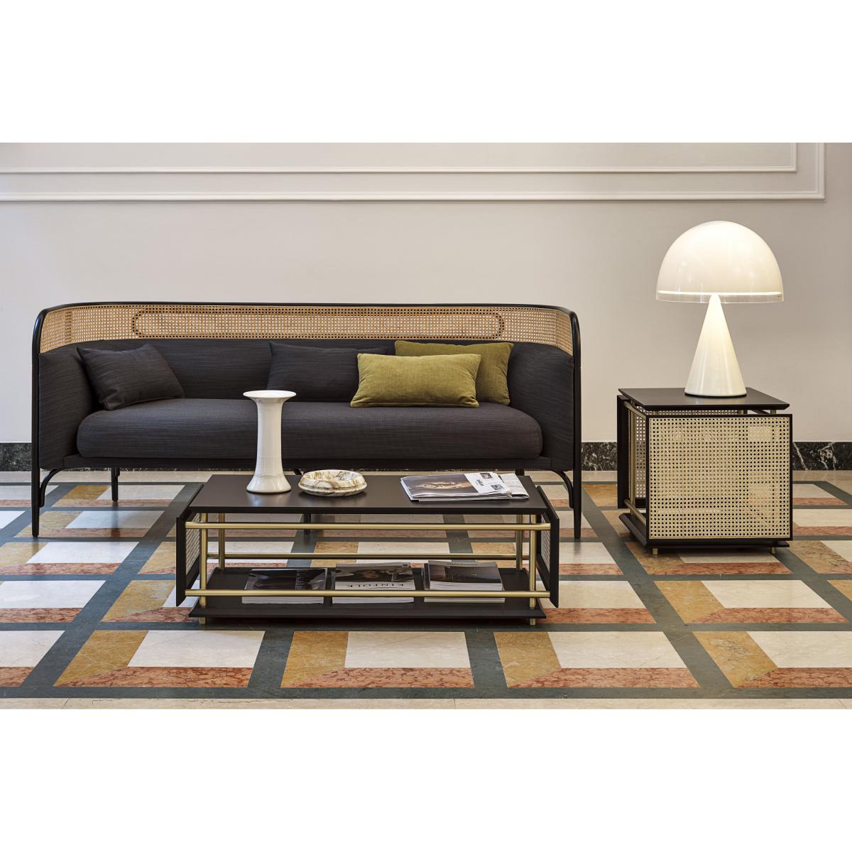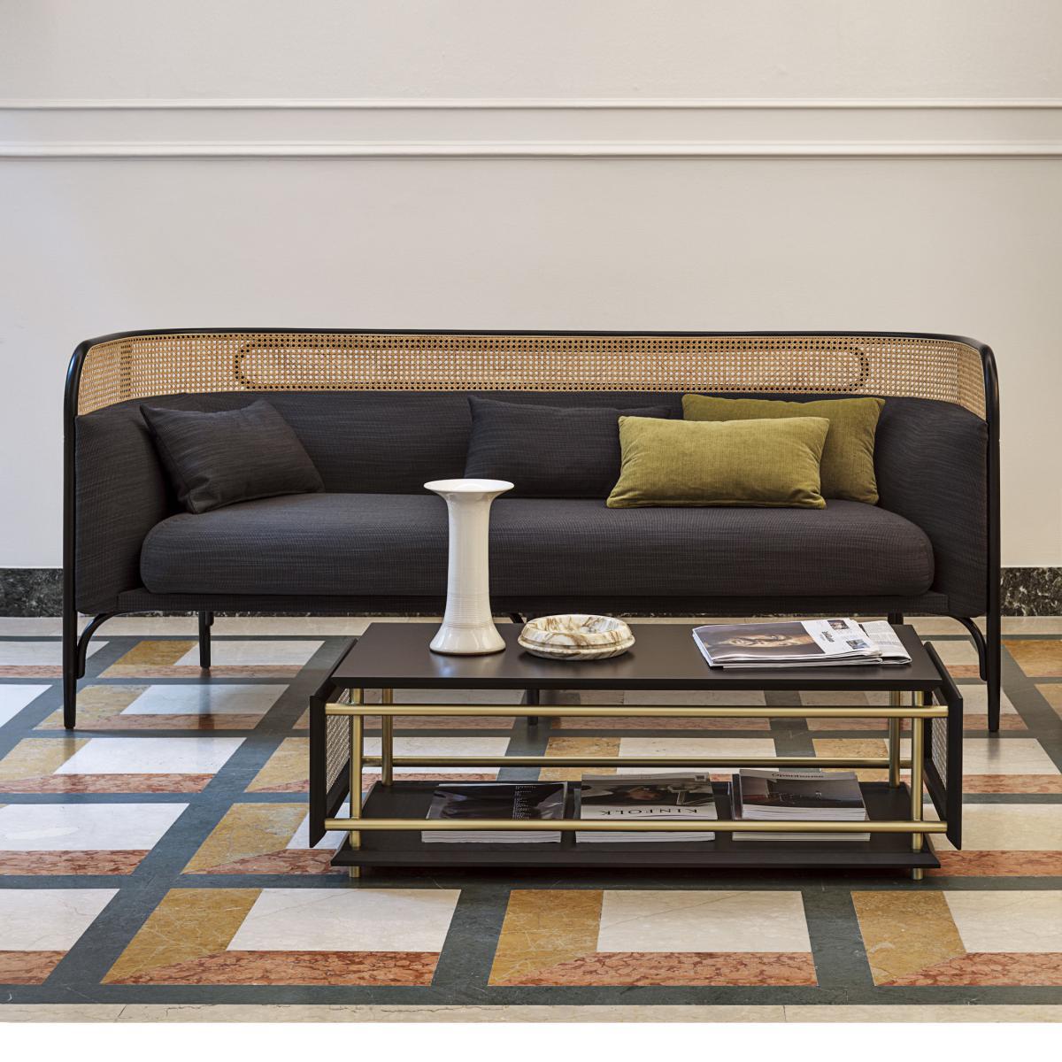 Exuding a retro charm with an Art Deco feel, the Targa collection was designed in 2015 by the famous Italo-Danish Gamfratesi studio. This is a sofa that breathes great modernity, combined with the timeless elegance of the first items of bentwood furniture that appeared in the late 19th century. Its simple, structured lines and incredible mix of materials give the seat a strong and contemporary personality. The traditional Wiener GTV Design codes are found in Targa : a steam-bent beechwood structure, enhanced with a superb natural straw caned surround. The curved element – a Wiener GTV Design leitmotiv – is found in this item behind the backrest forming the decorative panel after which it is named (Targa means plate in Italian). The structure creates a light and graceful envelope that surrounds the padded seat. Its simple lines accentuate the high-end Kvadrat fabric. As beautiful from the front as it is from the back, the Targa sofa will cause a sensation in the middle of a room. Rich materials, high standards of quality, exceptional finishes and an original form, all wonderfully characteristic of the Wiener GTV Design spirit. Drawing on the tradition and way of thinking of Michael Thonet, Wiener GTV Design develops products rooted in an innovative, meticulous design process. A team of designers, creators and artisans produces unique products of exceptional craftsmanship. Product sustainability is at the centre of the development process.