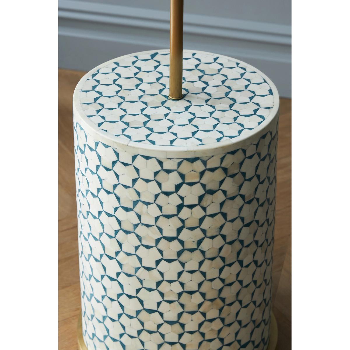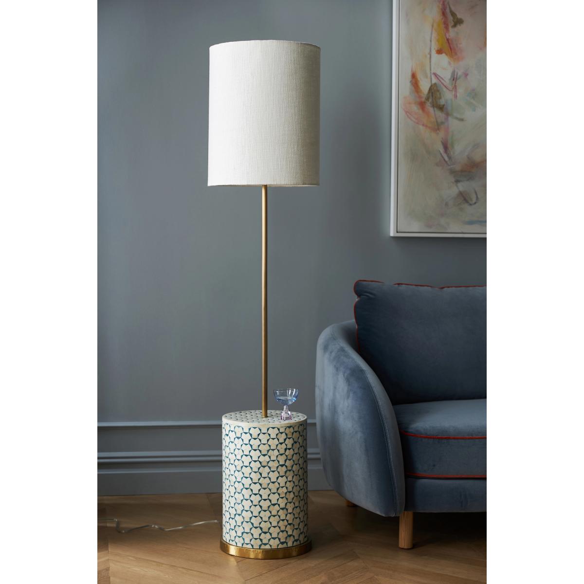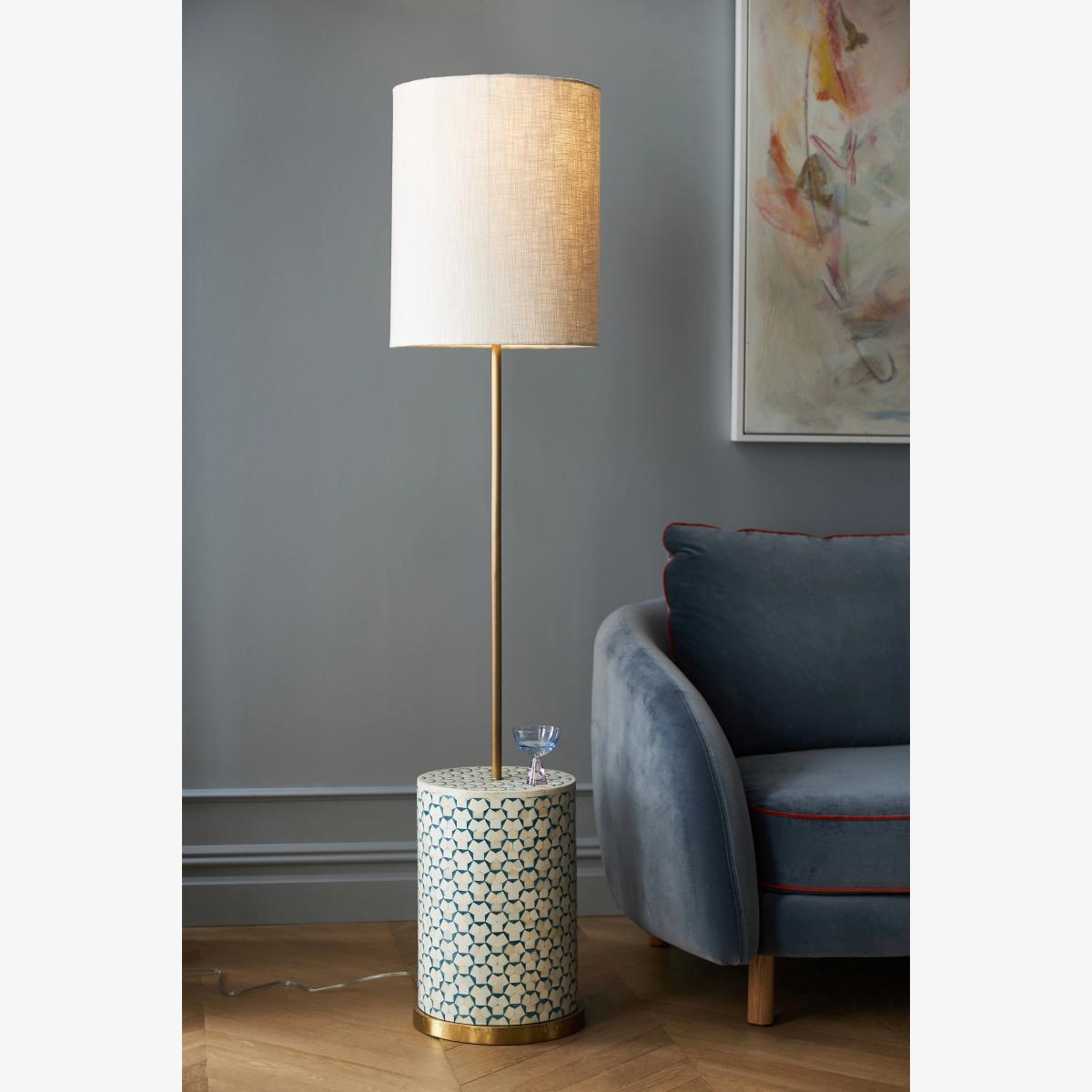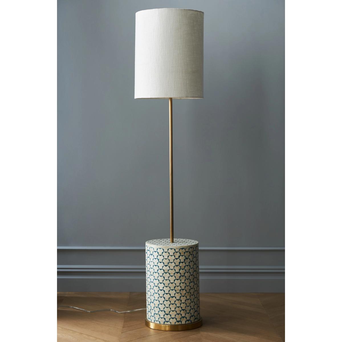 Since the days of ancient Egypt, craftsmen have been using inlaid bone to decorate surfaces, and for good reason: it embodies a natural sheen that adds instant luxury to any space. Featuring an intricate pattern, this floor lamp is a sophisticated addition to your living area decor. This item is CE listed, meaning it has been tested and approved to meet the government-regulated safety standards for the UK. Use with electrical outlets of 230v or lower, as anything higher can cause fire or injury. If you're purchasing this item for use outside of the United Kingdom, employ the adapter and voltage converter suited for your country Targua Inlay Floor Lamp by Anthropologie in Blue
