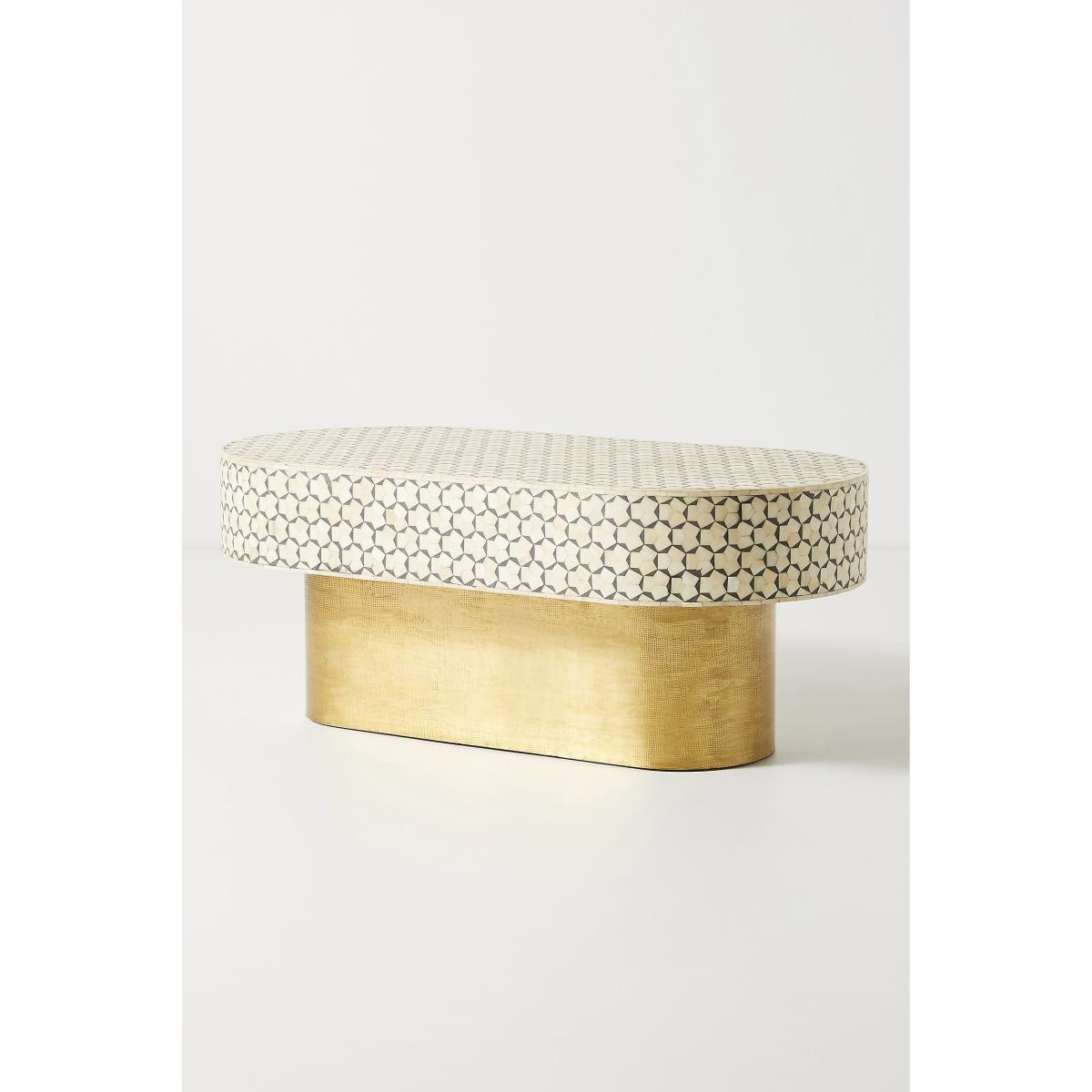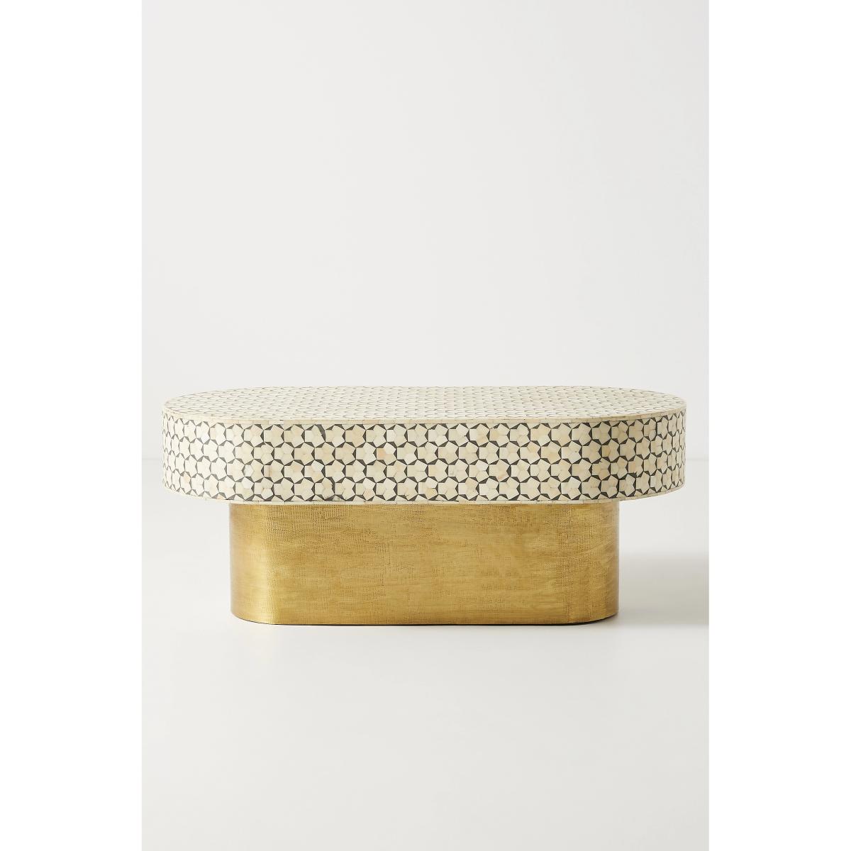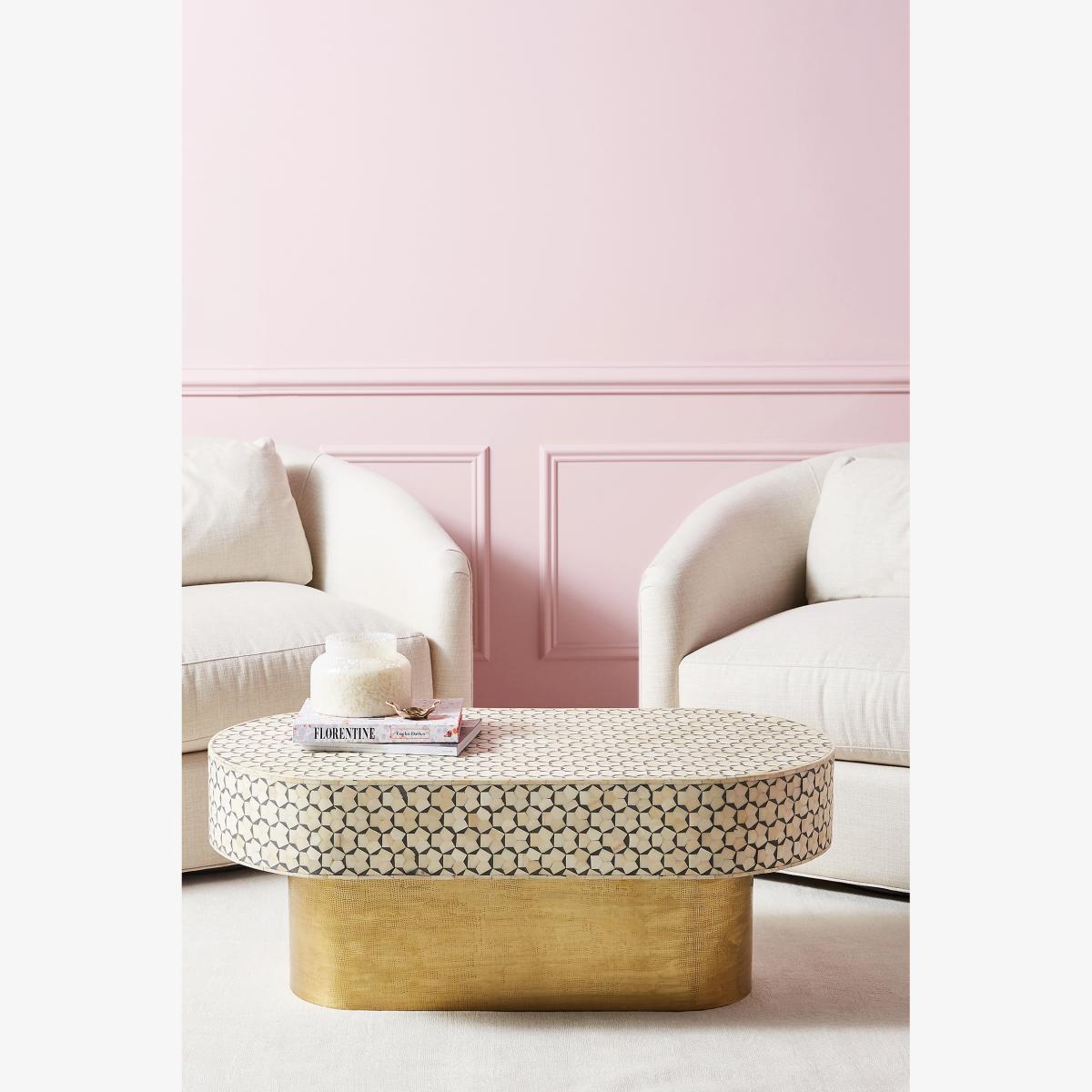 Since the days of ancient Egypt, craftsmen have been using inlaid bone to decorate furniture surfaces, and for good reason: it embodies a natural sheen that adds instant luxury to any space. Handcrafted using the same centuries-old technique, this room-anchoring piece captures the essence of Moroccan tilework with a reiterative bone inlay design atop a hammered antique brass base. * Exclusive to Anthropologie * Online only * Furniture pieces weighing over 30kg include delivery to your room of choice and packaging removal * Due to the handcrafted nature of this item, expect slight variation in the appearance of each unique piece * Handcrafted bone inlay and resin coffee table with a hammered antique brass base * Wipe clean with soft cloth. Avoid using chemical cleaners * This piece is intended for indoor use * Some assembly required * Imported
