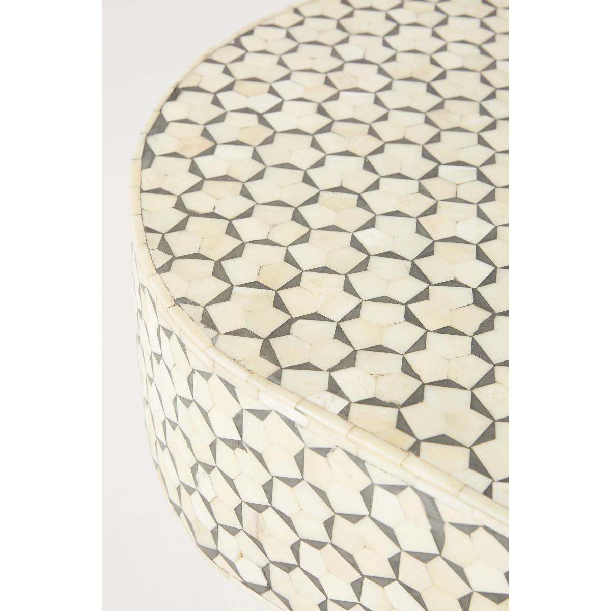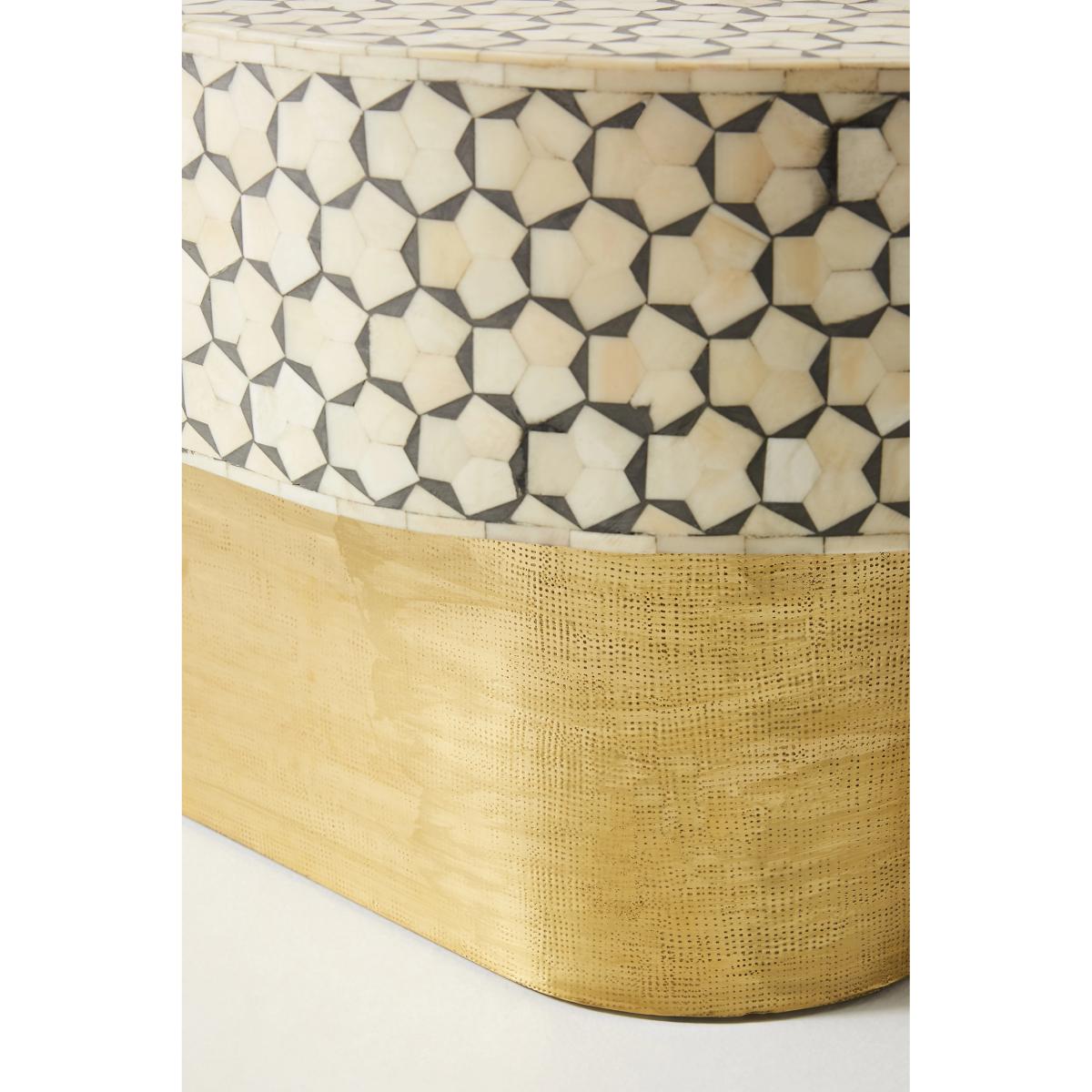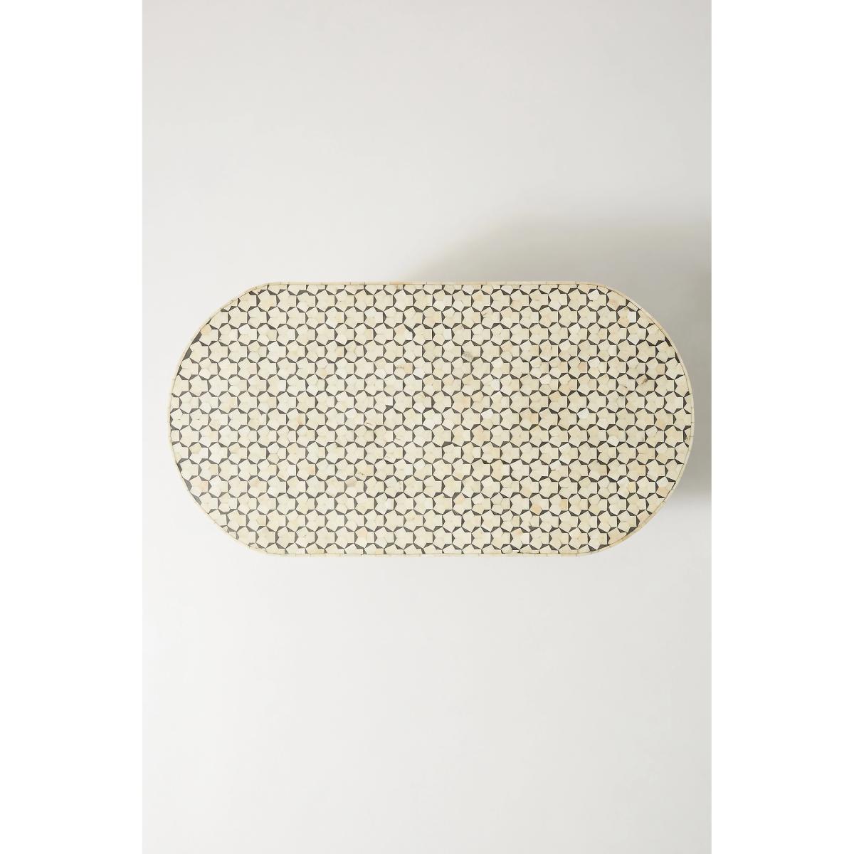 Since the days of ancient Egypt, craftsmen have been using inlaid bone to decorate furniture surfaces, and for good reason: it embodies a natural sheen that adds instant luxury to any space. Handcrafted using the same centuries-old technique, this room-anchoring piece captures the essence of Moroccan tilework with a reiterative bone inlay design atop a hammered antique brass base. * Exclusive to Anthropologie * Online only * Furniture pieces weighing over 30kg include delivery to your room of choice and packaging removal * Due to the handcrafted nature of this item, expect slight variation in the appearance of each unique piece * Handcrafted bone inlay and resin coffee table with a hammered antique brass base * Wipe clean with soft cloth. Avoid using chemical cleaners * This piece is intended for indoor use * Some assembly required * Imported