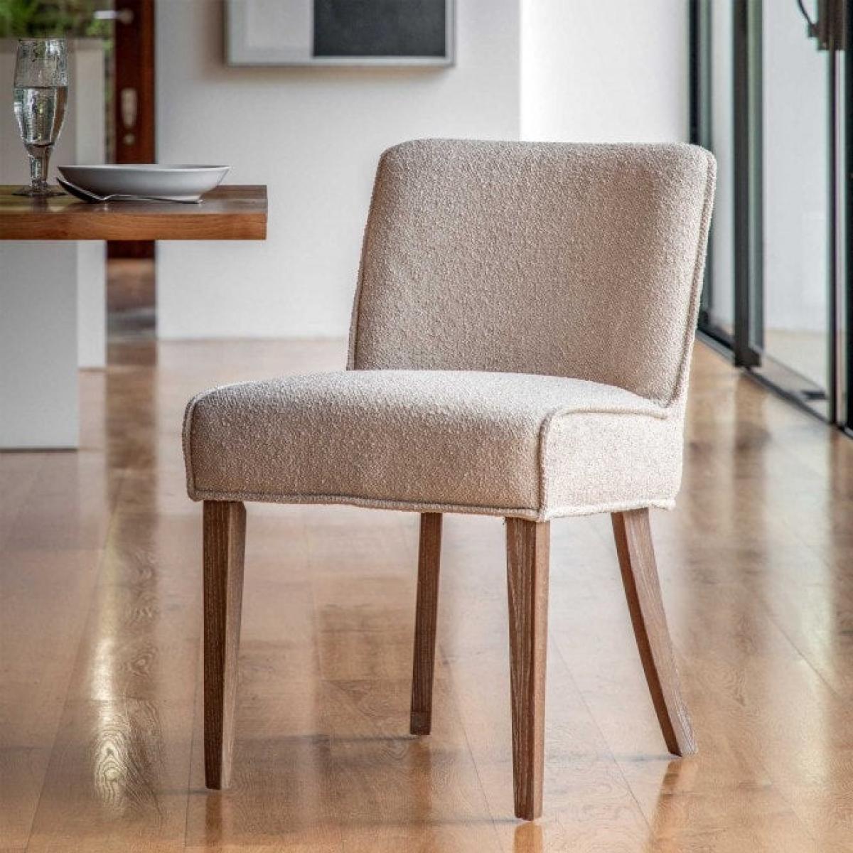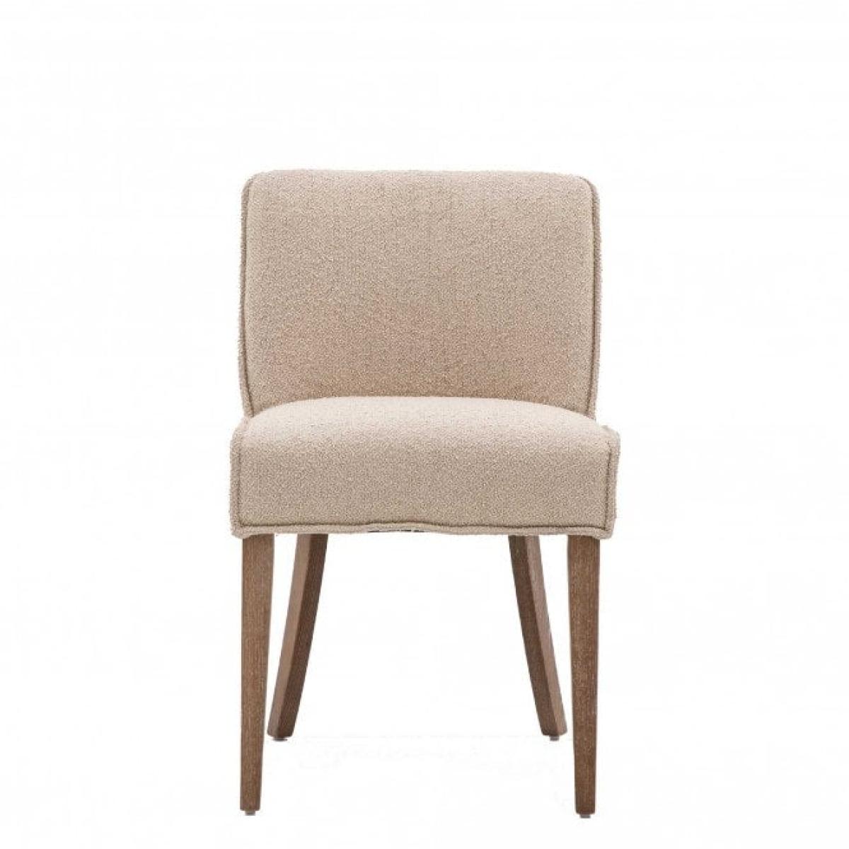 Set of 2 understated and chic dining chairs perfect for almost any interior and dining space. Upholstered in neutral taupe linen with gently curved legs.