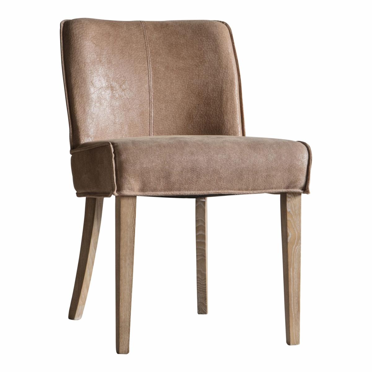 Luxurious set of two leather dining chairs. Perfect for adding understated luxury to your dining space. Finished in a light tan leather, these chairs will suit any interior décor.