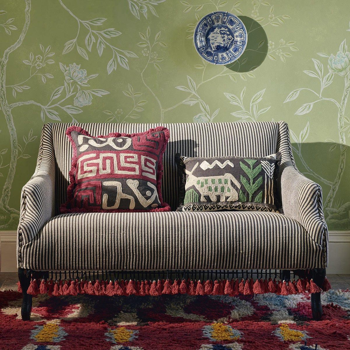 I really like this cushion cover - the bold, graphic pattern and rich Grenache hue make it a versatile statement piece. It’s well-suited for adding a pop of colour to neutral sofas or beds, especially in eclectic or boho interiors. I recommend pairing it with textured throws or other textiles in muted, earthy tones to let the pattern stand out, or with complementary colours like blush or terracotta for a warm, coordinated look. Practical styling tips include layering it with other cushions to create depth or using it as a standalone accent on a plain armchair for a focal point. Its vibrant design makes it a great way to bring personality and colour into a variety of living spaces.