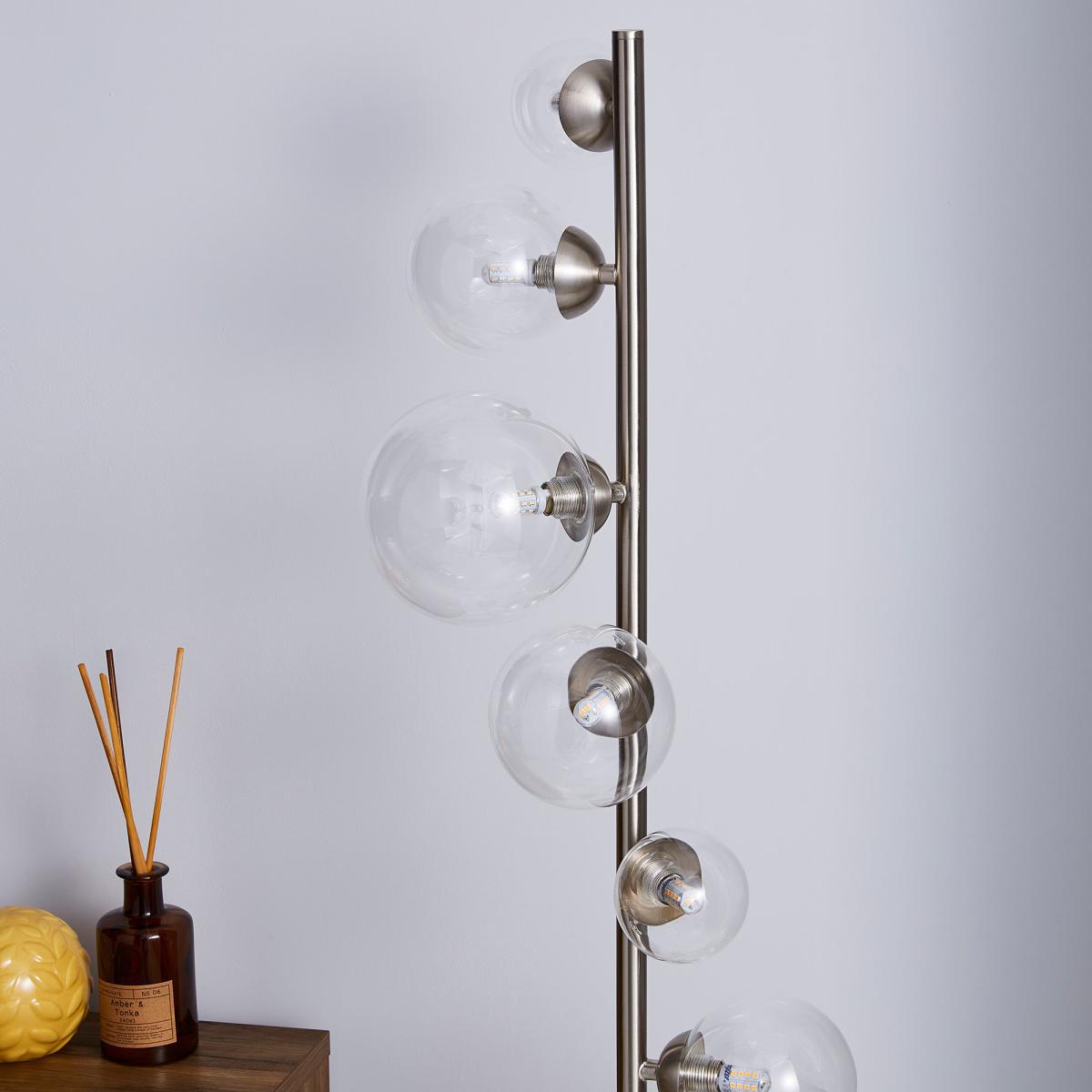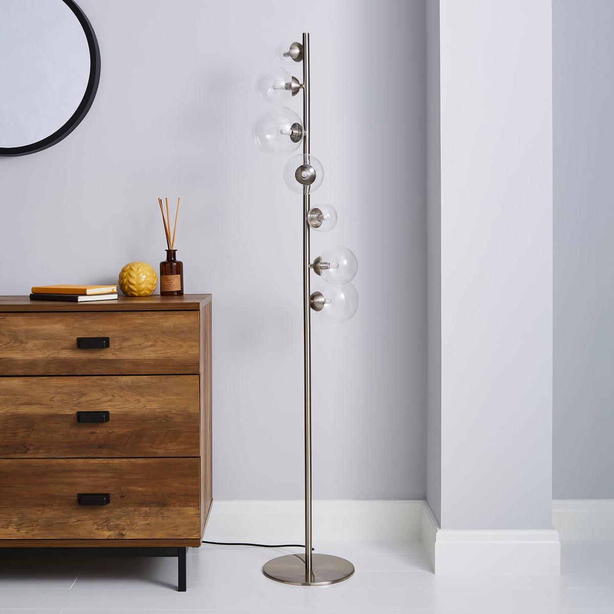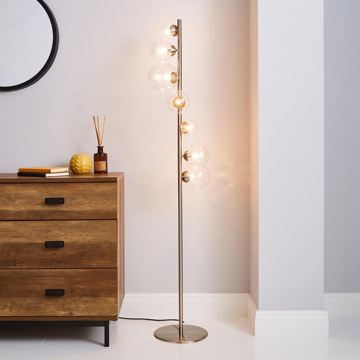 This stunning glass floor lamp has a modern, on-trend design that will complement an array of home decors, alongside its stylish colourway.
