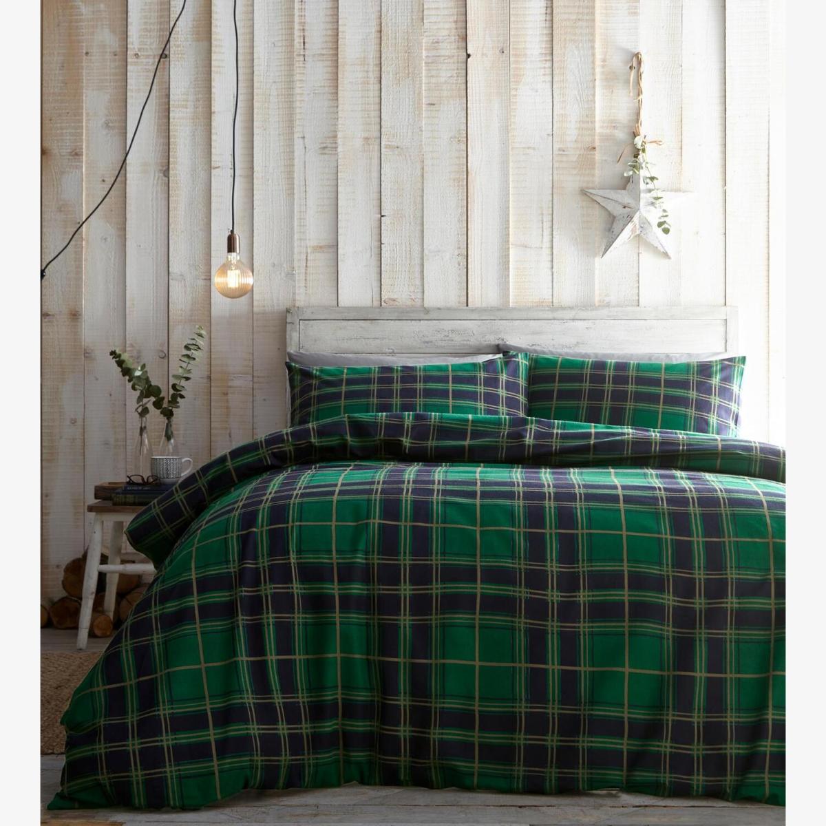 Tartan 100 Brushed Cotton Duvet Cover Set - Green / Double