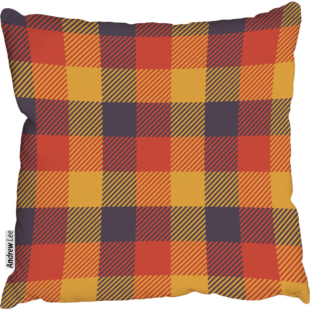 Tartan Autumn Plaid Trendy Tiles Outdoor Cushion - Orange / 45cm