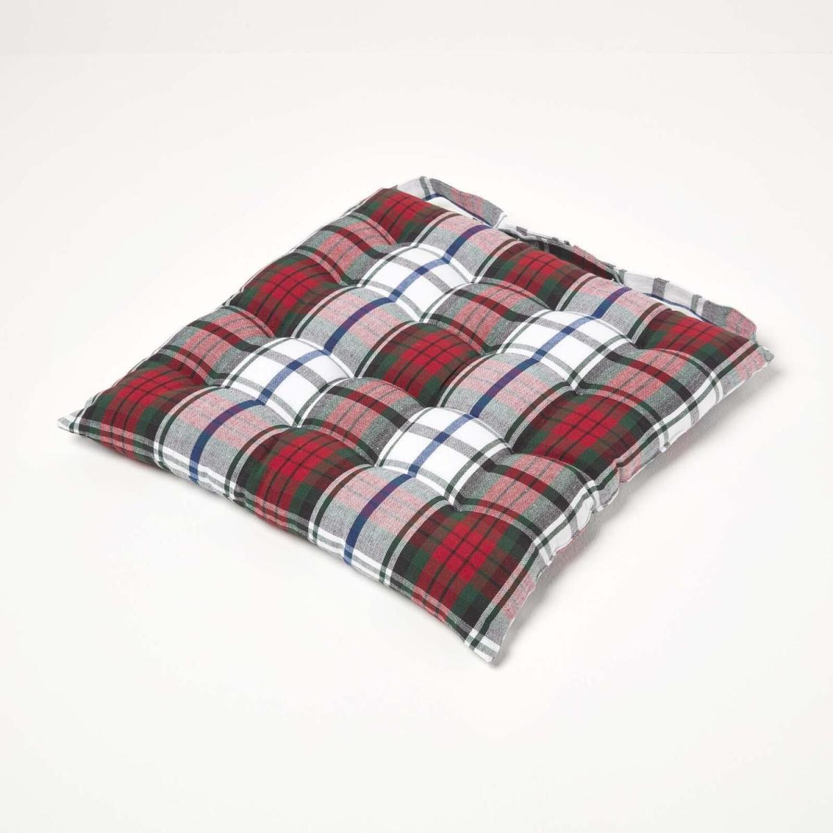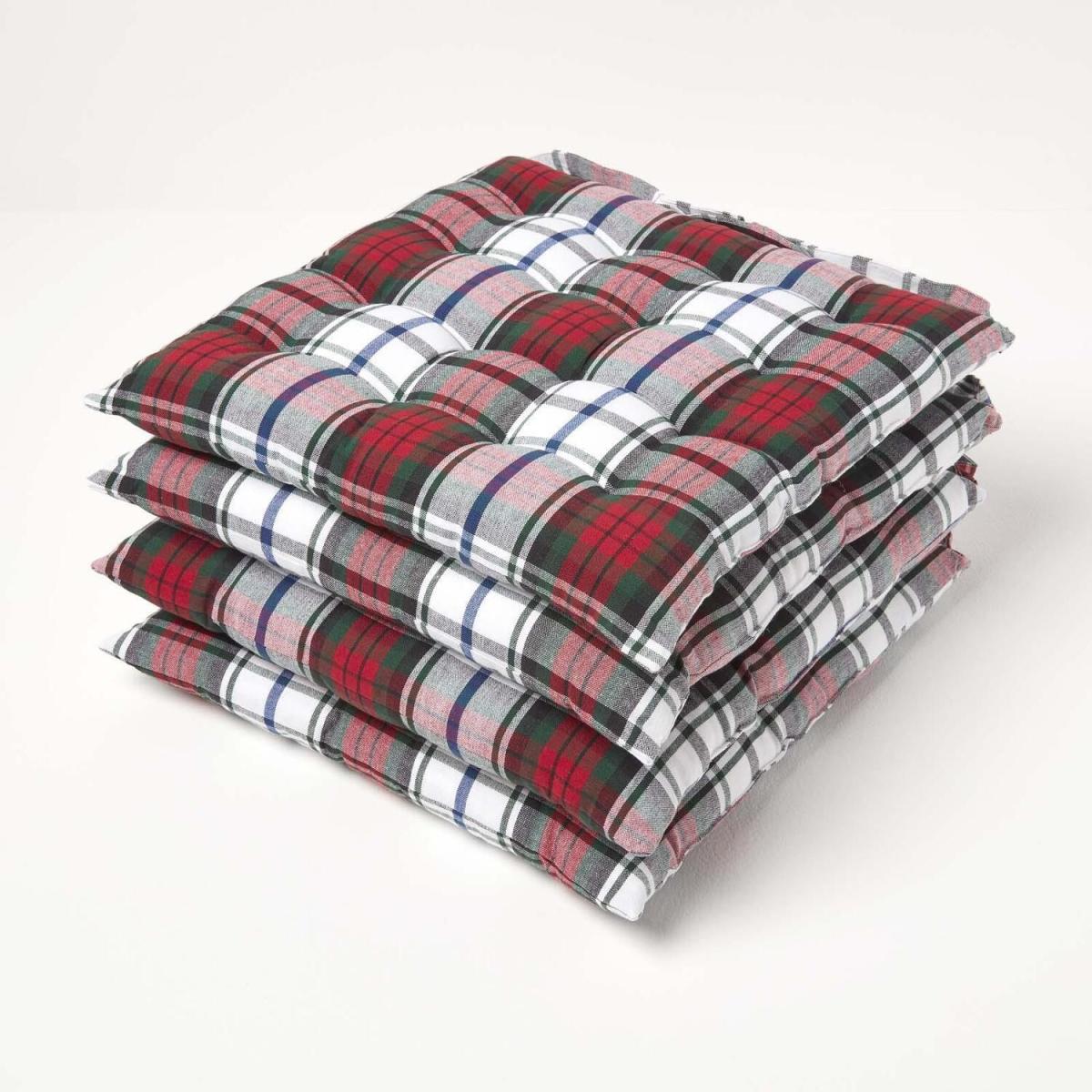 Super soft and supportive outdoor and dining bench seat pads that will add a burst of colour to your home and garden. Available in over 20 colours and designs including plain, striped, tartan and patterned, choose from individual seat cushions or opt for sets of 4 and 6. Homescapes seat pads are woven from durable cotton and generously filled to provide lasting support and comfort. Featuring a carry handle for easy transportation, each cushion also has 2 ties at the back to ensure the seat remains secure when in use. Perfect to use as an outdoor or indoor seat cushion, they can be used on garden or dining room chairs, patio furniture or as colourful floor cushions both indoors and outside. Washable at 40. C, store indoors when not in use.