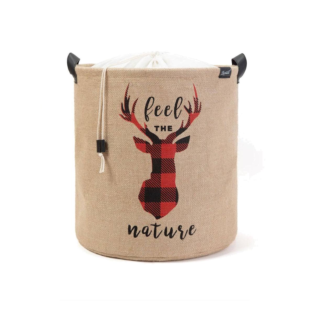 Tartan Deer Jute Laundry Basket, Natural