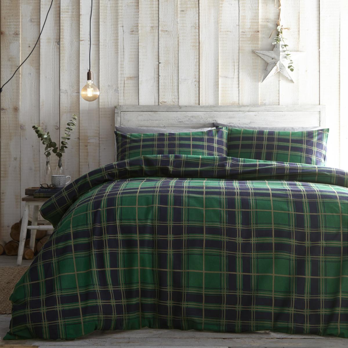 Tartan Duvet Set - Green / Double