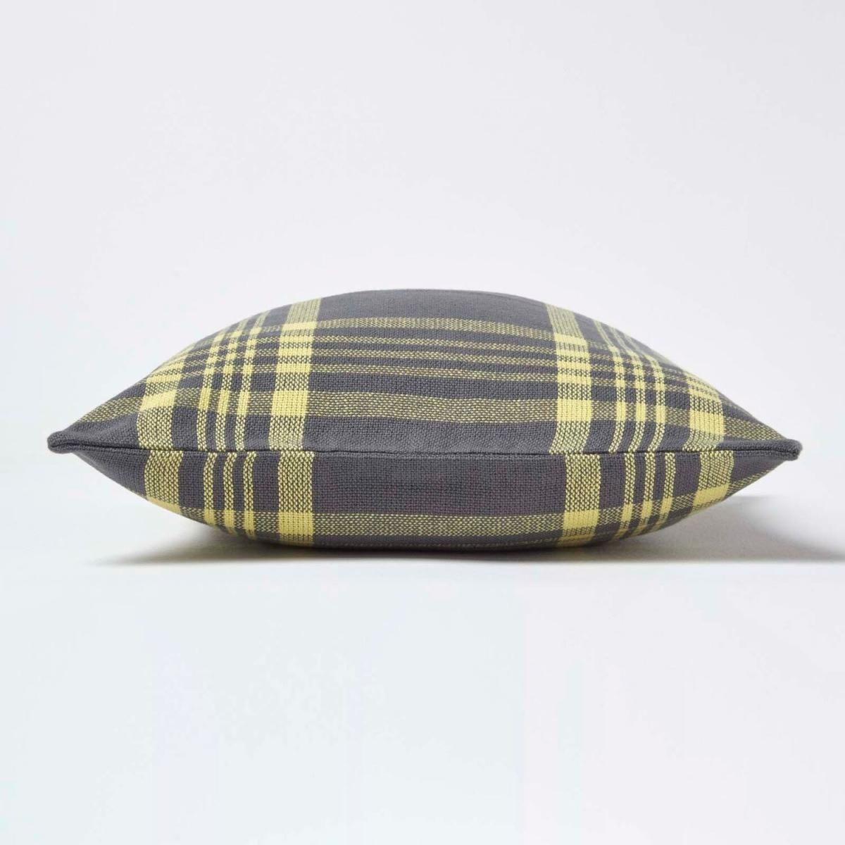 The Homescapes brand tartan cushion covers are a desirable and fashionable household accessory. Sporting a traditional Scottish tartan pattern, these cushion covers are of the highest quality and are constructed using 100 soft cotton yarns. This means that the fabric itself is soft just what you want to relax on.brbr. The contemporary classic plaid design originated in woven wool cloth in Scotland, and was primarily worn by clansmen. Despite that it has consistently proven itself as a stylish print over the years it will never go out of fashion.brbr. With two sizes available (see below), these sensational pieces will serve you well, and available in 4 different stylish designs you cannot go wrong with Homescapes tartan cushions.brbr. Sizes (all sizes are approximate)brbr18 x 18 or 45cm x 45cmbr24 x 24 or 60cm x 60cmbrbrColoursbrbr. Black Yellowbr Grey Redbr. White BlackbrRedbrbr Whichever size and colour you decide upon, go ahead and match them up with one of Homescapes complementary pieces such as the tartan sofa or bed throws which are also offered in an assortment of colours.