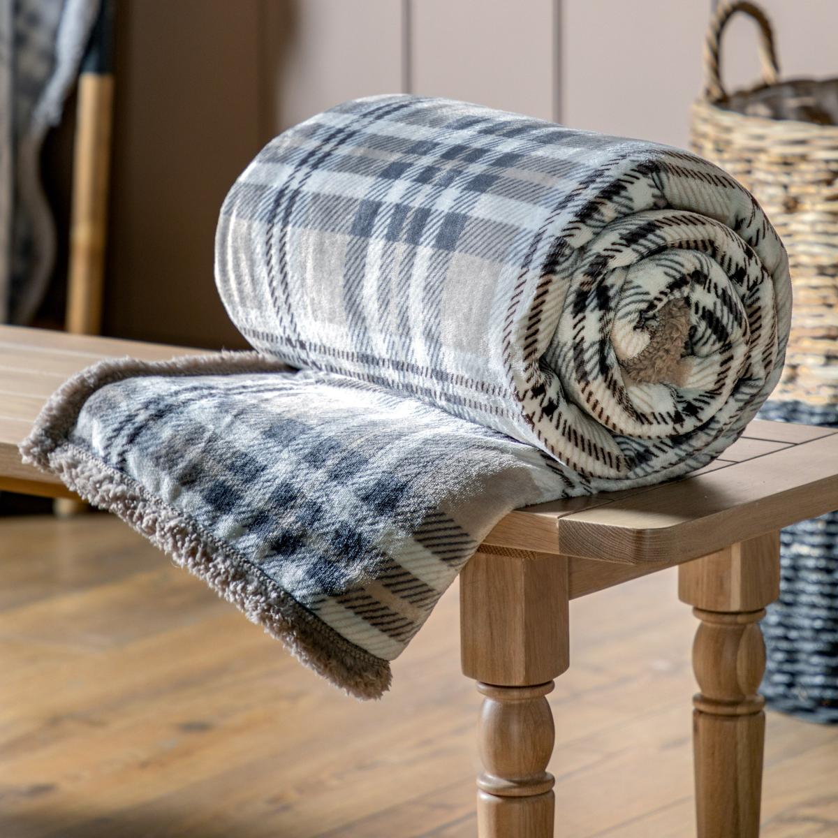 Extra cosy and warm this sherpa fleecy throw will help you nice and toasty on cold winter nights. Double sided the throw perfectly combines style and practicality, one side features a natural tartan pattern perfect for adding a touch of style to any room while the reverse fluffy sherpa fleece side will keep you nice and warm all year round. Extra cosy and warm this sherpa fleecy throw will help you nice and toasty on cold winter nights. Double sided the throw perfectly combines style and practicality, one side features a natural tartan pattern perfect for adding a touch of style to any room while the reverse fluffy sherpa fleece side will keep you nice and warm all year round.