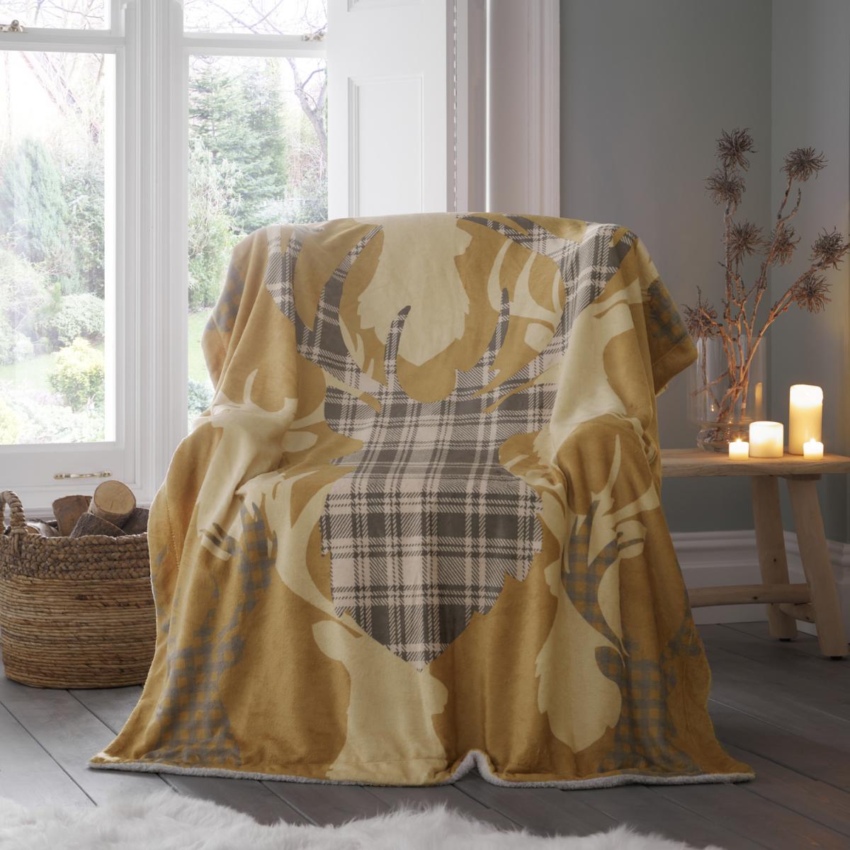 Tartan Stag Mustard Throw - Yellow
