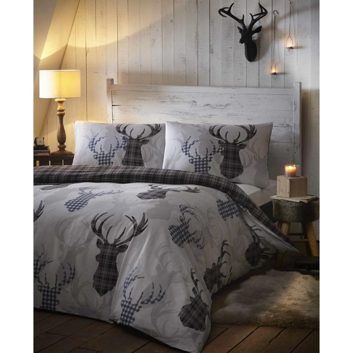 I love this bedset because of its bold tartan stag print, which adds a touch of classic Scottish charm while keeping things modern with the grey palette. It’s versatile enough to work well in rustic or country-inspired interiors, but it can also bring a cosy, layered look to a contemporary space when paired with neutral or textured accessories. For styling tips, consider keeping the bedroom's colour scheme simple-think soft greys and whites-and add warmth with chunky knitted throws or textured cushions. Incorporating wooden accents or vintage accessories can enhance the rustic vibe, while keeping the focus on the striking stag print for a polished yet welcoming feel.