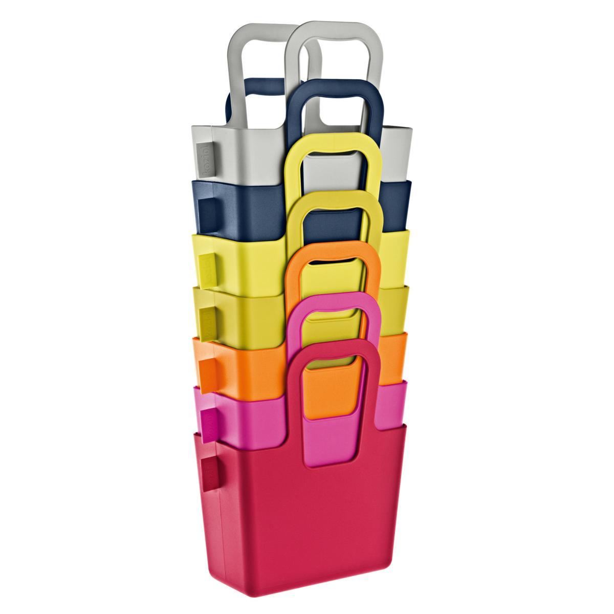I love this little basket for its sleek, modern design and versatile functionality. The black finish makes it an easy fit in contemporary or minimalist interiors, adding a touch of understated sophistication. It's perfect for organising clutter on a desk, in the bathroom, or even in the kitchen. To style it effectively, consider using it for daily essentials to keep surfaces tidy or pairing it with other Koziol accessories for a coordinated look. Its neutral tone and practical shape also mean it can seamlessly blend into both functional storage solutions and decorative displays.