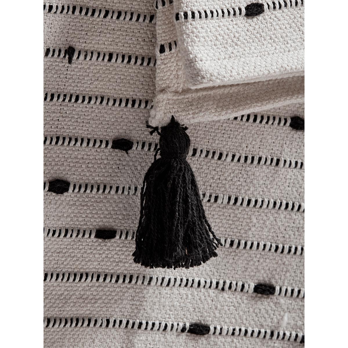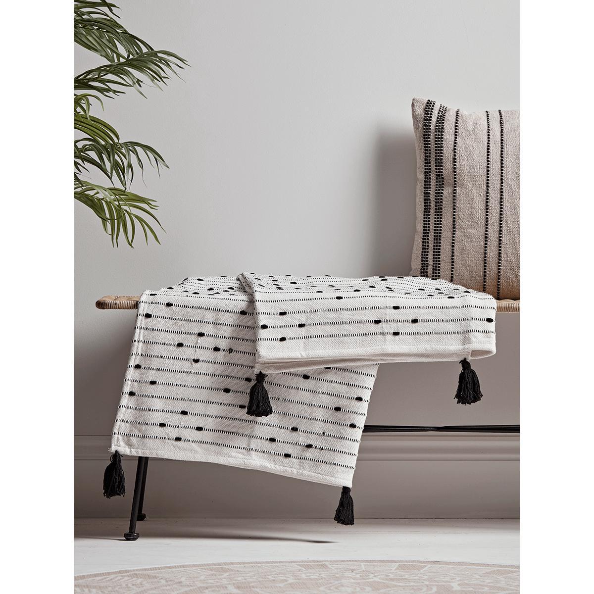 With a soft cream ground and black, textured dash effect, our monochrome throw is the perfect decorative accent for a neutral interior. Made from pure cotton with black tassels to each corner, it will make a gorgeous addition to your home.