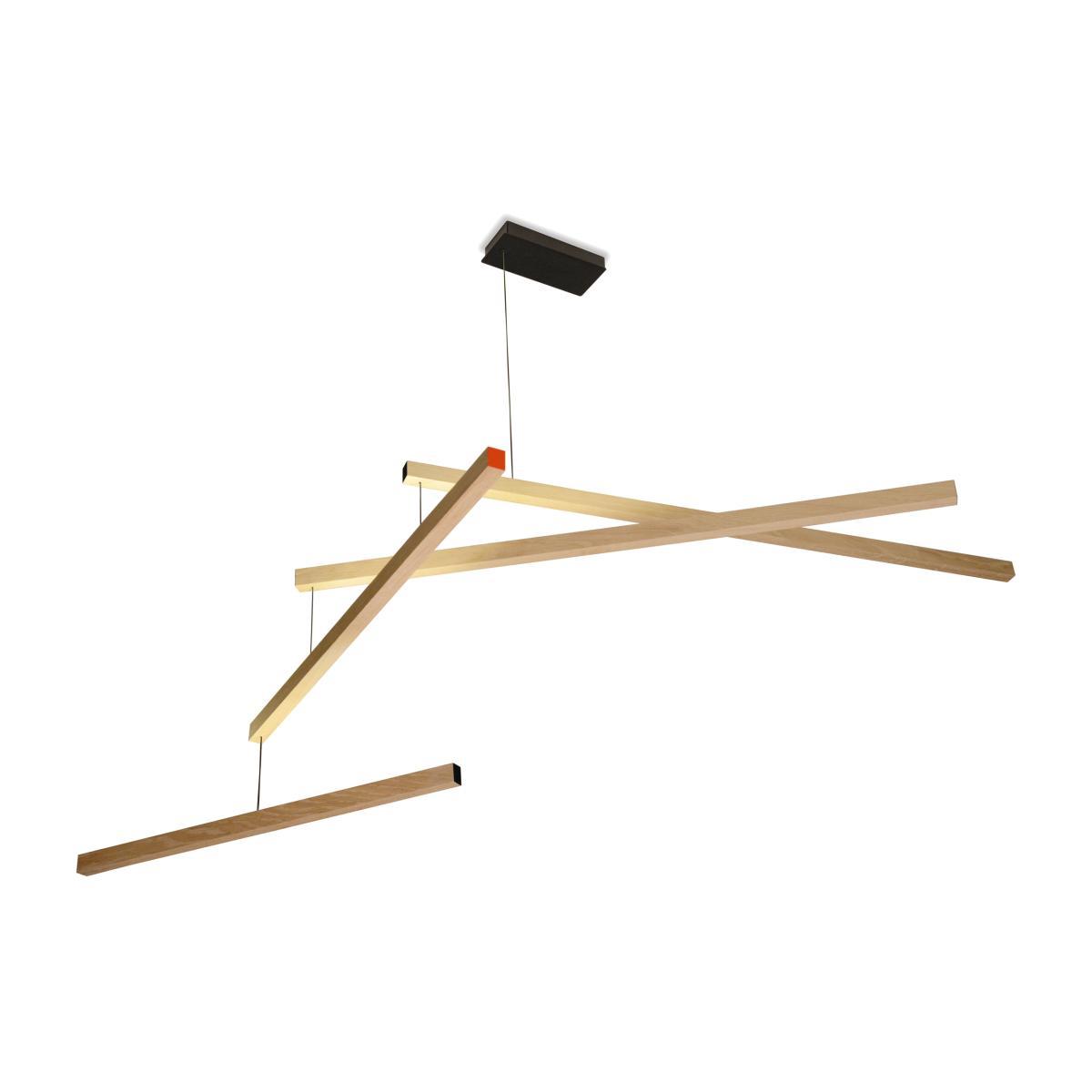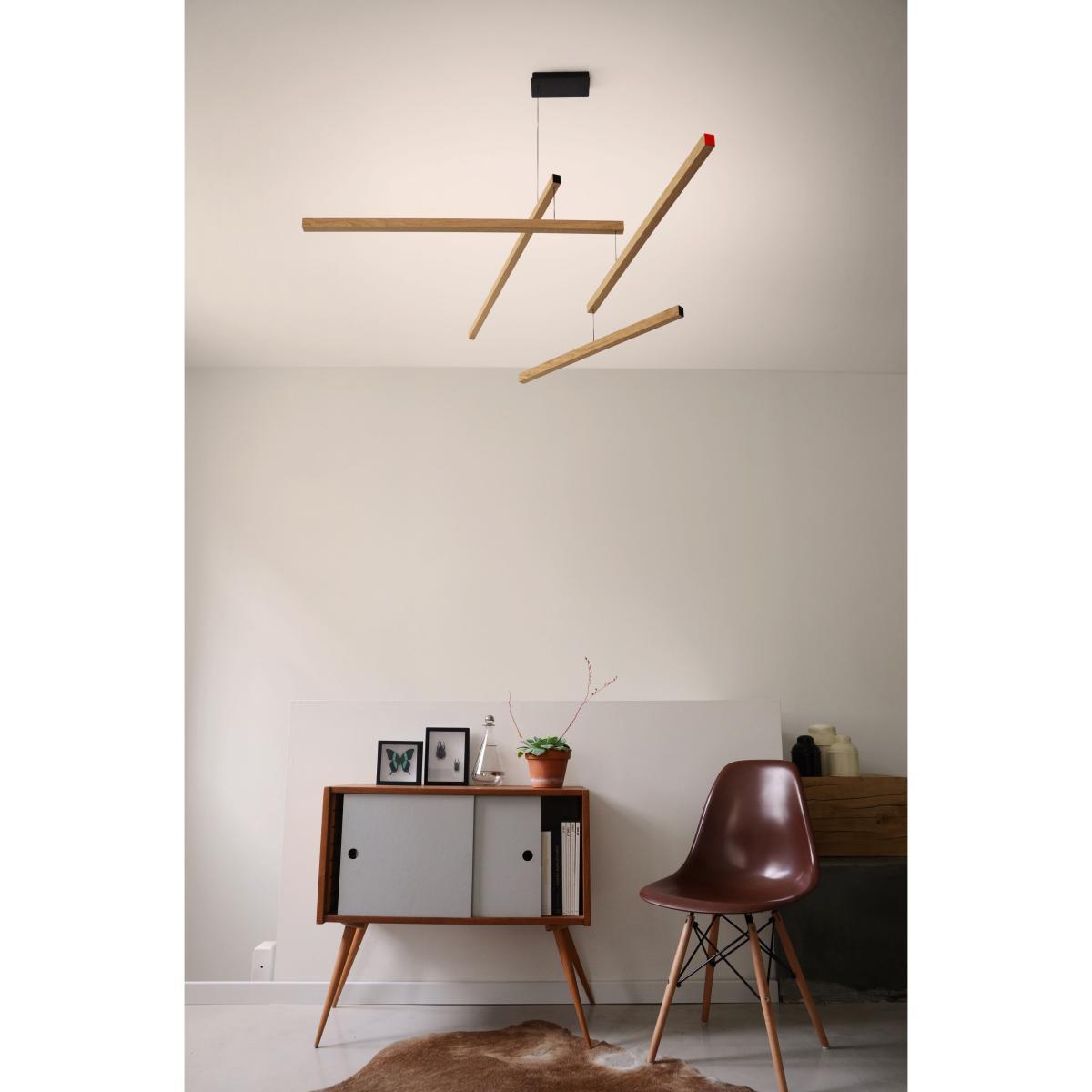 Poetry and lightness are the key words for this great suspension! Warm and refined, Tasso is composed of 4 oak strips delicately accented with a colorful touch. Like a mobile, Tasso appears to float and animates at any air movement. Equipped with LED source set on the ceiling facing portion of each strip, this atypical suspension provides a delicate and indirect light (LED source). Tasso will bring in an entrance, a bedroom or living room, a surprising touch of serenity.