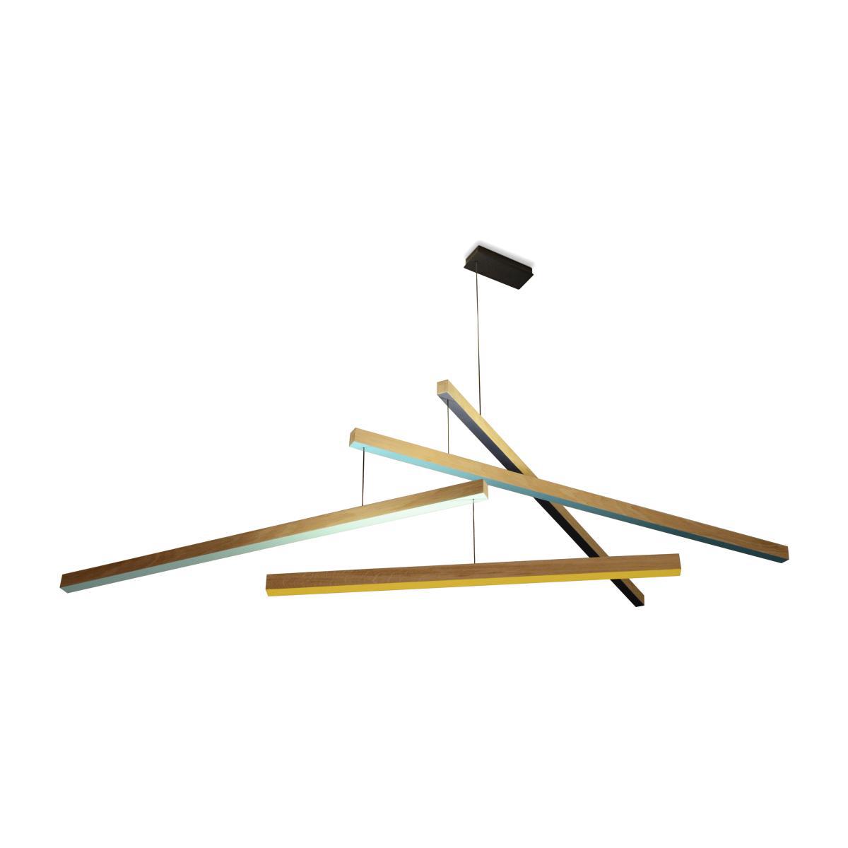 Poetry and lightness are the key words for this great suspension! Warm and refined, Tasso is composed of 4 oak strips delicately accented with a colorful touch. Like a mobile, Tasso appears to float and animates at any air movement. Equipped with LED source set on the ceiling facing portion of each strip, this atypical suspension provides a delicate and indirect light (LED source). Tasso will bring in an entrance, a bedroom or living room, a surprising touch of serenity.